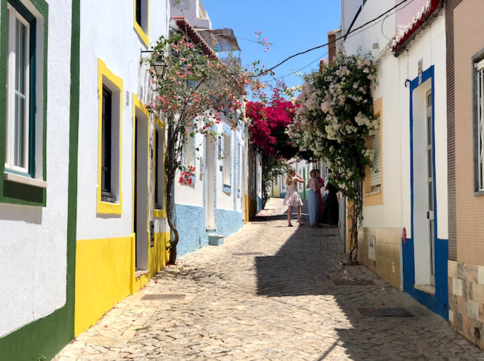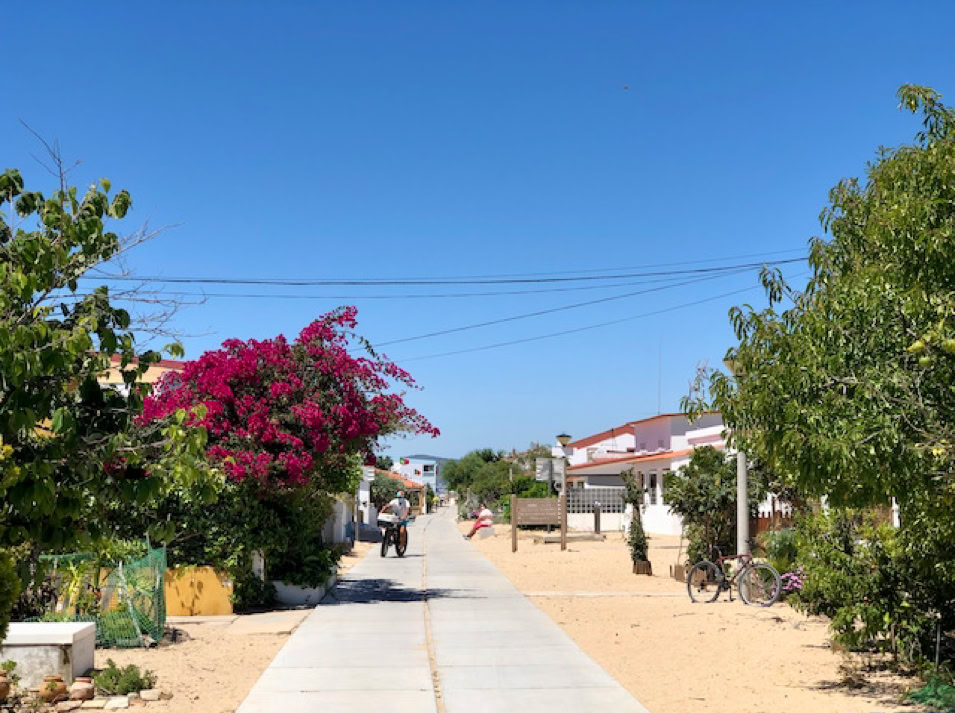 Wir machen einen ausgiebigen Spaziergang durch den kleinen aber sehr charmanten Ort , in dem das Fischereihandwerk noch zu Hause ist. Am Ende der Hauptstraße fügt sich ein langer befestigter Holzsteg über die Dünen bis zum langen Sandstrand. Hier genießen Ausflügler aus Olhão und Umgebung die Sonne und das Wasser des Antlantiks.