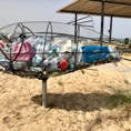 Während der Fahrt ändert sich die Landansicht und wechselt von der felsigen Grotten- in eine sandige Dünenlandschaft. Nur im Hintergrund sind die Schatten der Berge zu sehen.