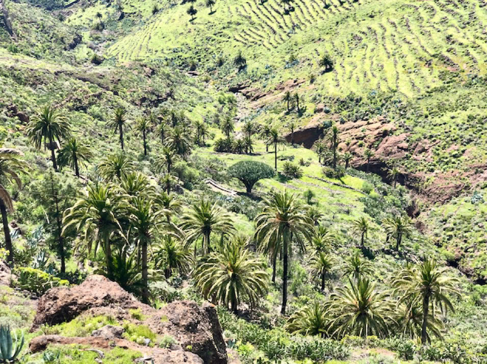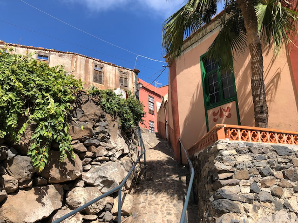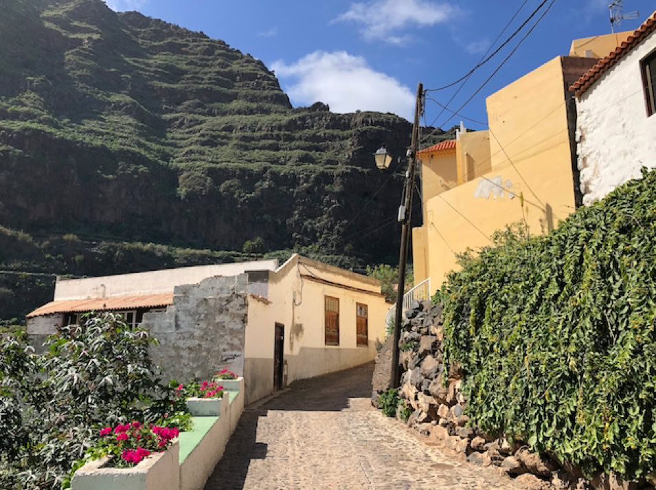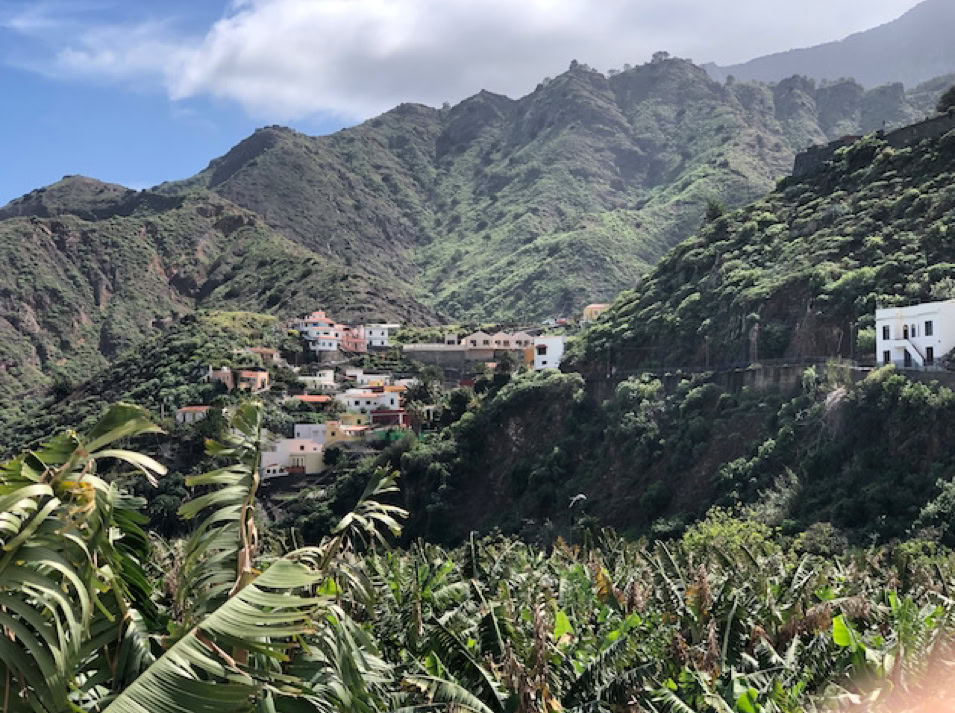 Ob nun die Bananenplantagen in Hemigua, welches sich dem Straßenverlauf lang hinwegziehen oder dem eher romantisch anmutendem Agulo mit seinen charmanten Gassen bis hin nach Vallehermoso, dem übersetzt „schönem Tal“, überall werden wir von einer grünen Landschaft empfangen.