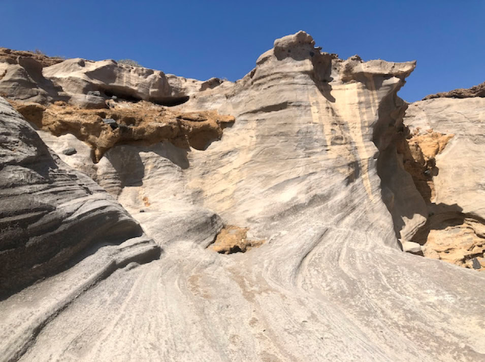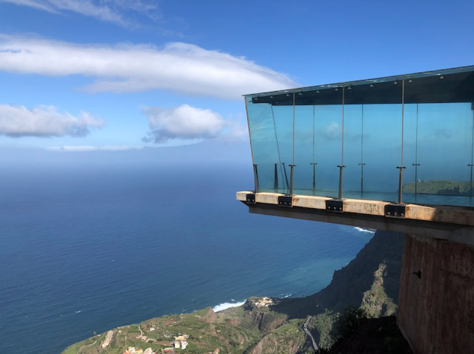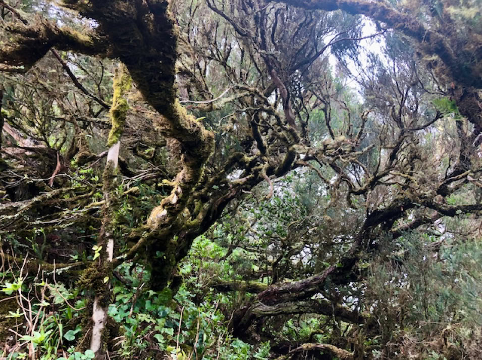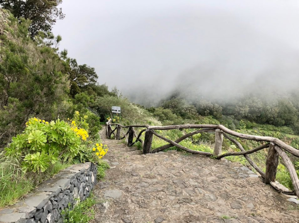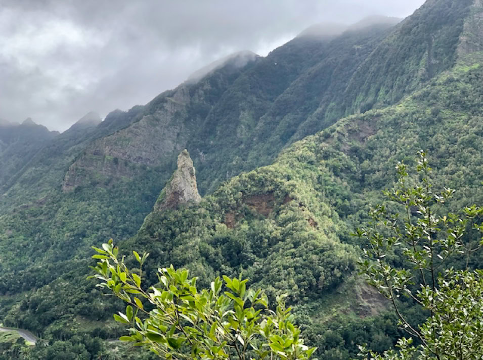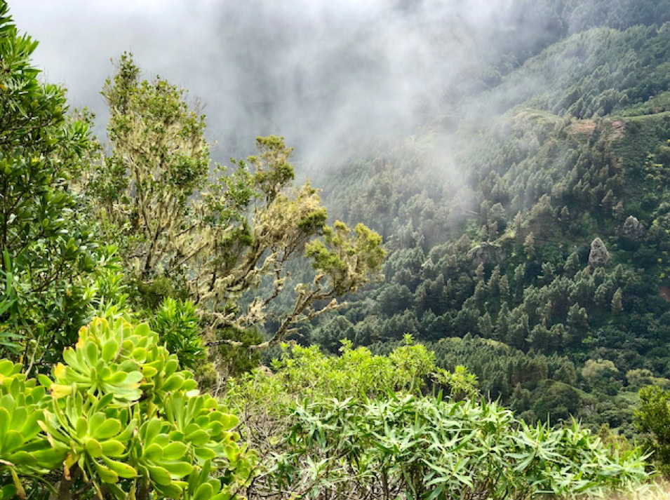 Beeindruckend ist der Nationalpark Garajonay. Wir fahren und laufen durch die mystischen Nebelwälder. An den Zweigen und Stämmen der Bäume wachsen Moose, welche wie Feenhaare im Wind wehen und die Feuchtigkeit der Luft aufnehmen. Blumen in leuchtendem gelb, blau und violett wachsen am Wegesrand und säumen die Berghänge bis in die Täler. Dazwischen markante Felsformationen.