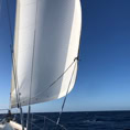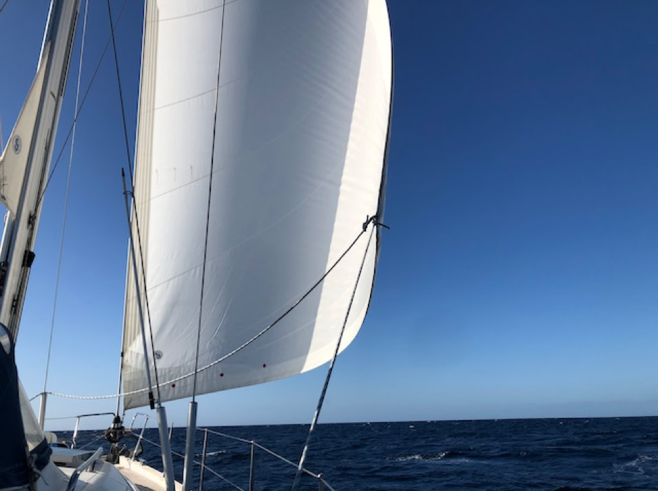 Anschließend geht es raus auf den Atlantik, wir setzen das Groß und erwarten den Wind. Nachdem wir die Landspitze Gran Canarias passieren, ist er da. Zwar nicht übermäßig stark, aber wir kommen gut voran und genießen das leise Rauschen der Wellen an unserer Manatee. Die Freude hält ca. 2 Stunden. Dann präsentiert uns der Atlantik eine spiegelglatte See. Sogar die Delfine gucken nur mal kurz aus dem Wasser und schlafen wie der Wind weiter. Irgendwie hält der Wind sich nicht an die Vorhersagen. Okay, dann wird es eine Motorfahrt bis nach Teneriffa. In den frühen Abendstunden erreichen wir den Hafen von San Miguel, machen Halt am Wartesteg und klarieren ein. Das Anlegen auf unseren Liegeplatz wird ein wenig zur Wundertüte. Erst mit der vierten Muringleine können wir uns festmachen. Die anderen drei hingen mit mehr oder weniger langen Enden nur im Wasser.