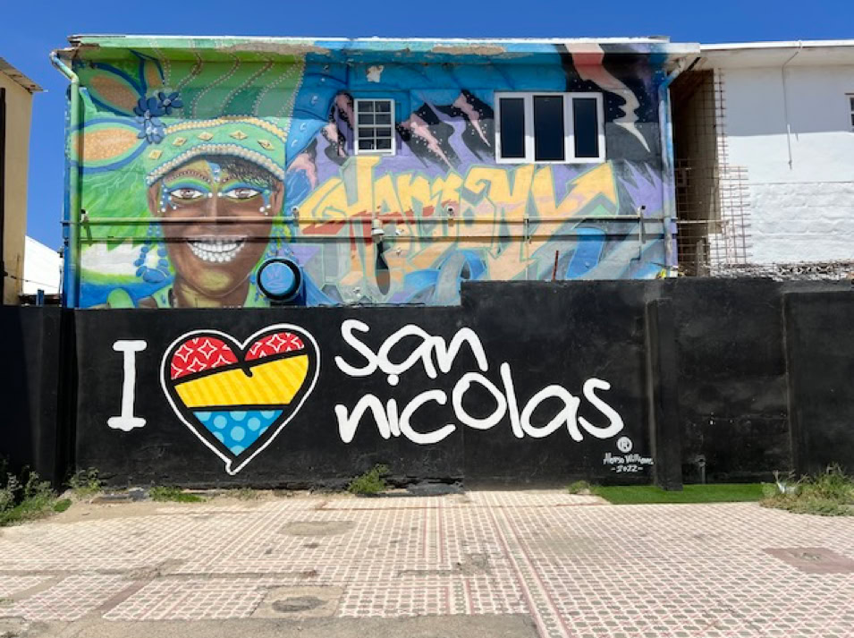 Um auch in die entlegenen Gegenden der Insel zu gelangen, mieten wir uns ein Auto und starten unsere Rundtour erst einmal Richtung Süden. Neben der vielseitigen Straßenkunst in San Nicolas bewundern wir die Landschaft und Strände der Region. Ein riesiger roter Anker steht als Wahrzeichen zum Gedenken an die Seeleute an der Kreuzung und ist wohl eines der beliebtesten Fotomotive hier. Die Gegend ist rau und von riesigen Säulenkakteen geprägt.