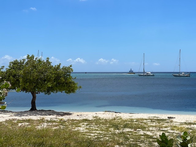Wir fahren durch das markierte Fahrwasser in die Lagune vor Oranjestad. Auf dem Weg winken uns mal wieder die Crew der SY Paradise zur Begrüßung. Schön, so empfangen zu werden. Der Anker fällt in türkisblaues Wasser und die erste Schildkröte steckt ihren Kopf heraus. Natürlich gesellen wir uns schnell zu ihr, um ein erfrischendes Bad zu nehmen und gleichzeitig den Halt des Ankers zu kontrollieren.