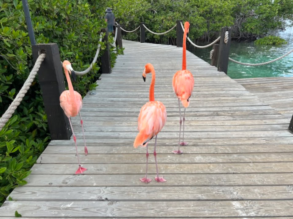 Hier stolzieren Flamingos zwischen den Badegästen, während Leguane gemütlich in der Sonne liegen. Großartig! Das lässt sich aushalten.