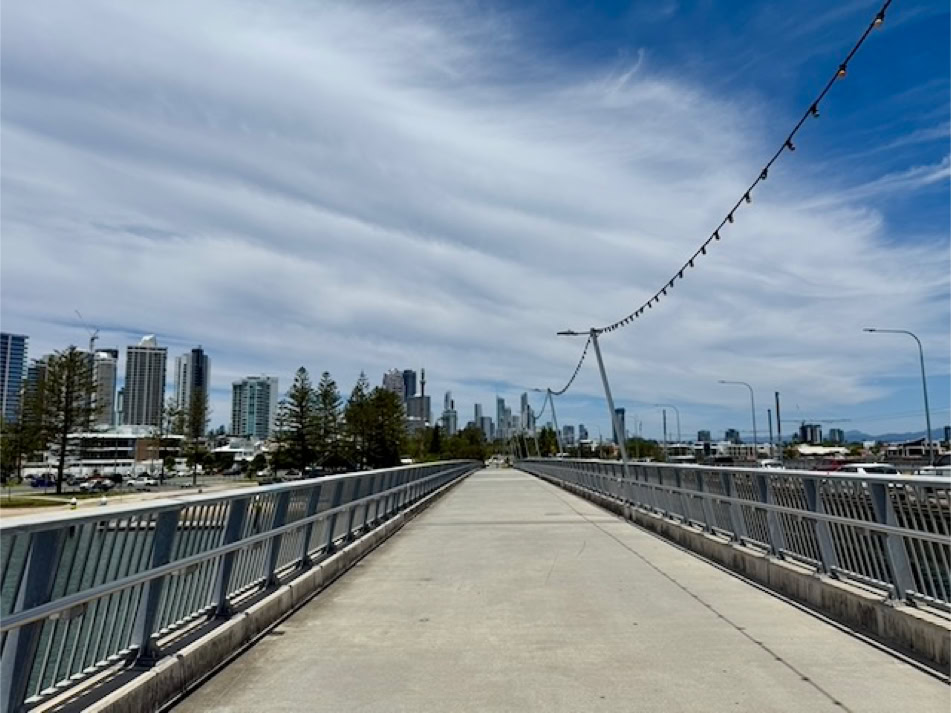 Wir buchen einen Liegeplatz, um auf unserer Manatee klar Schiff zu machen und die Salzkruste des Pazifiks zu entfernen. Ausgeschlafen und erholt sind wir nun bereit, die Umgebung zu erkunden. Die Gold Coast ist eine pulsierende Stadt, in der das Leben überall präsent ist. Zwischen den betriebsamen Straßen finden wir aber viele grüne Oasen und kleine Rückzugsgebiete. Wir freuen uns über die gute Infrastruktur und sind begeistert, dass die Lebensmittelpreise im Vergleich zu Nouméa wieder sehr moderat sind. Selbst einen Aldi gibt es. Unsere Manatee liegt in der Southport Marina, und um in die Stadt oder zu den großen Supermärkten zu gelangen, überqueren wir die lange Sundale Bridge. Dabei genießen wir den Blick auf den Nerang River und die vielen Boote, die hier unterwegs sind.