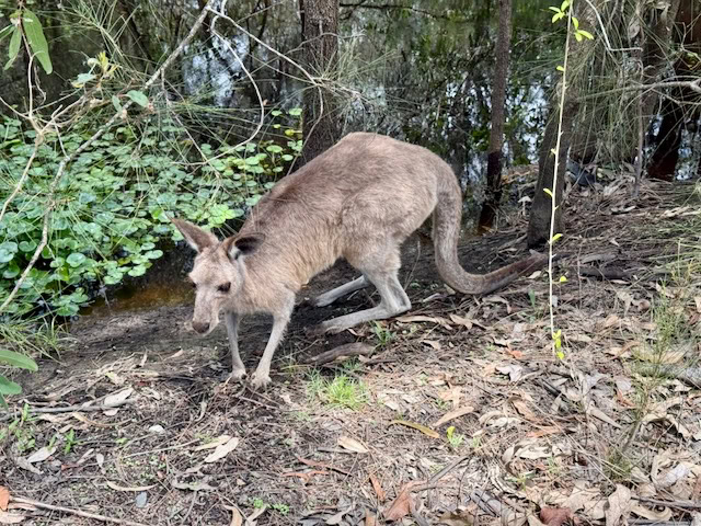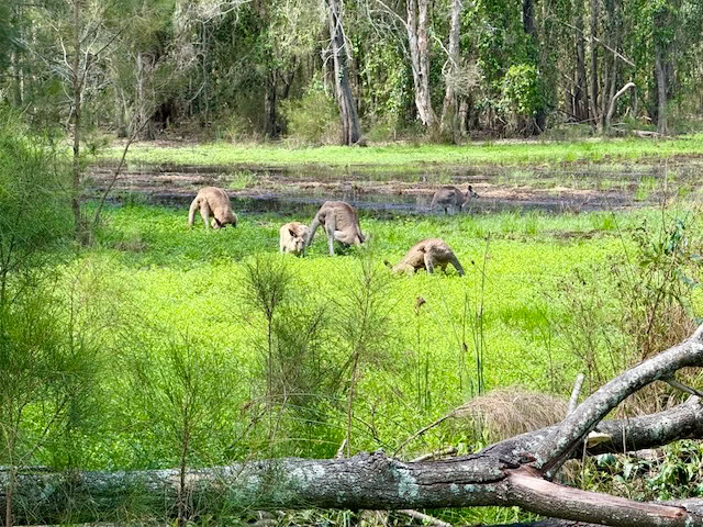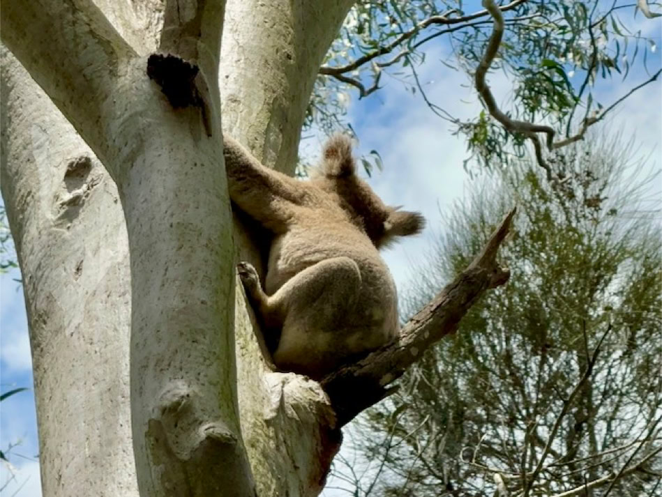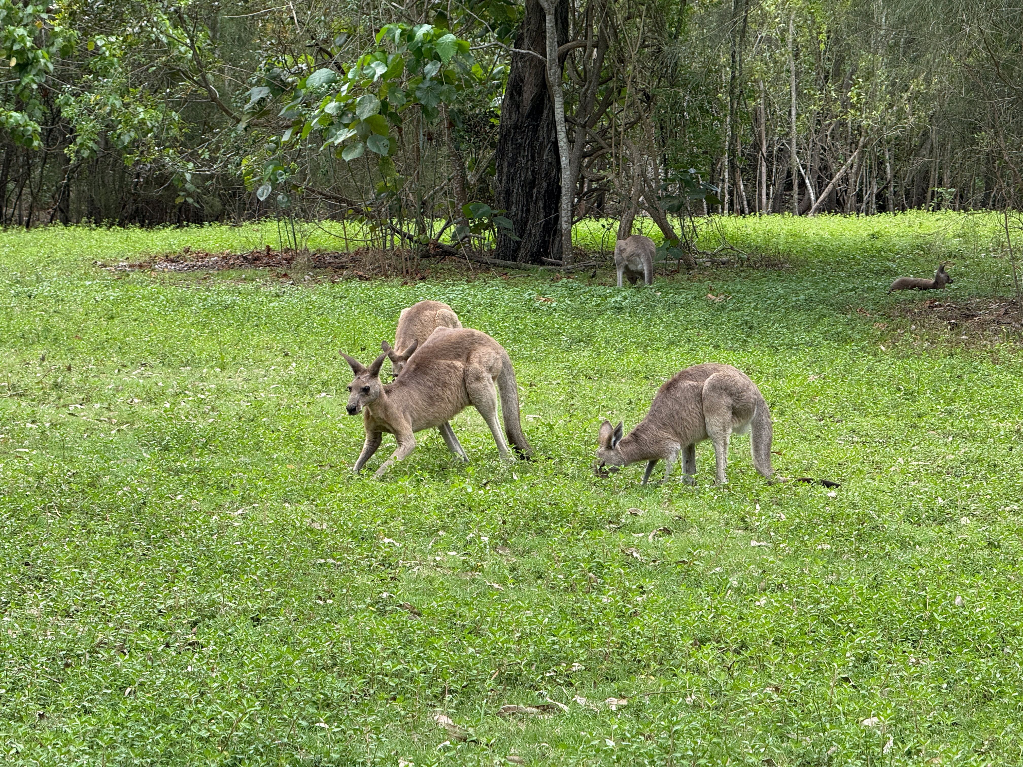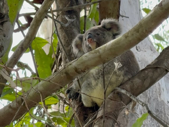 Wir fühlen uns wohl, aber wir wollen nach Sydney. Gewitterfronten und Gegenwind machen eine Weiterfahrt bislang noch unmöglich. Also nutzen wir die Zeit, um die Umgebung weiter zu erkunden. Da wir ja in Australien sind, wollen wir Koalas und Kängurus sehen. Mit Bus und Straßenbahn fahren wir in den Coombabah Lakelands Park, wo die Chancen groß sind, die Tiere in ihrem natürlichen Lebensraum zu entdecken. Unsere Erwartungen werden erfüllt. Das erste Känguru lässt nicht lange auf sich warten. Es beobachtet uns, scheint uns fast zu begrüßen, bis es wieder ins Grüne springt. Der Park ist ein sehr schönes, natürliches Landschaftsgebiet. Wiesen und mystische Waldabschnitte wechseln sich ab. Dann entdecken wir unseren ersten Koala in einem dicken Eukalyptusbaum. Ruhig, fast bewegungslos, sitzt er zwischen den Ästen und blinzelt ab und zu in die Sonne. Etwas später haben wir das Glück, eine Koalamama mit ihrem Kind zu beobachten. Diesmal gibt es sogar ein paar Aktivitäten der beiden. Kängurus grasen auf den Wiesen oder hüpfen vorbei. Welch ein gelungener Tag voller schöner Erlebnisse.