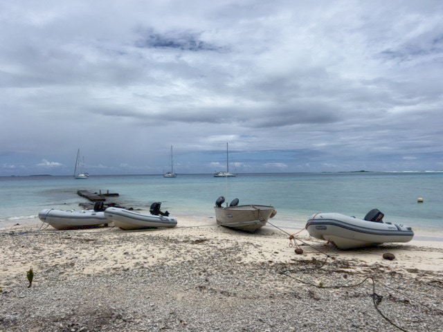 Segler verirren sich eher selten in dieses einsame und etwas abseits gelegene Atoll. Daher freuen sich die Ranger über neue Geschichten und kleine Geschenke wie Milchpulver, Kaffee, Bier und das ein oder andere Ersatzteil. Erfreut über die Abwechslung werden unsere drei Mannschaften zum BBQ am Strand eingeladen. Wir bringen Essen und Getränke an den Strand und werden dafür mit Kokosnusskrabben und Kokosnussmilch bewirtet. Ein wunderschönes, nachhaltiges Erlebnis für uns alle.