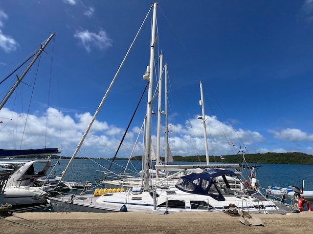 Frisch ausgeschlafen und schon die ersten Arbeiten erledigt, fahren unsere drei Boote am Folgetag zur Pier, um einzuklarieren.