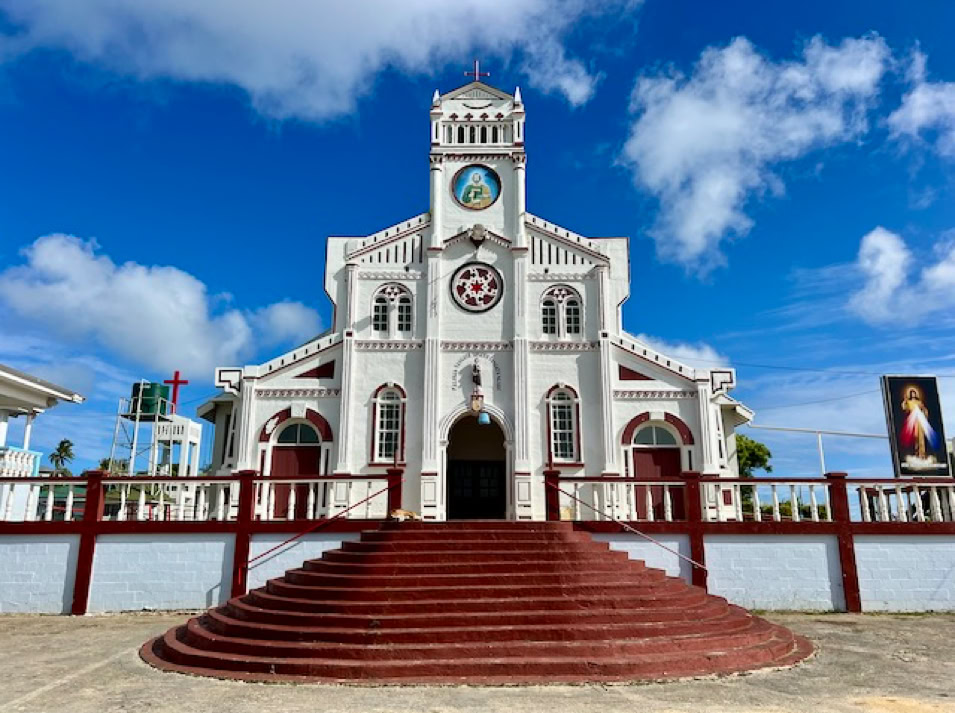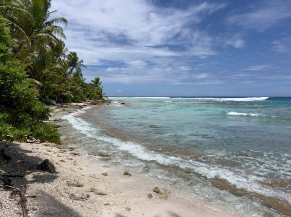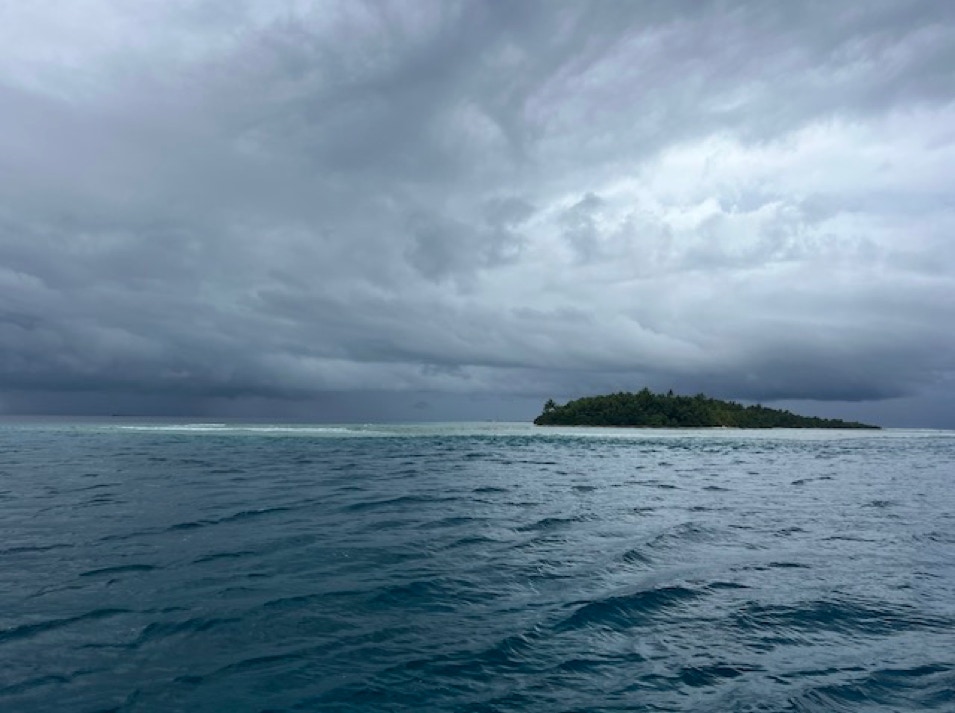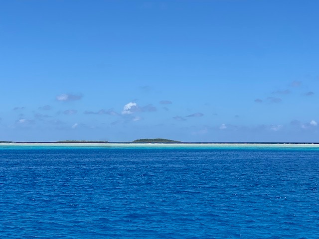 Nach sieben Tagen ist Land in Sicht, und wir fahren durch die Einfahrt des Atolls.