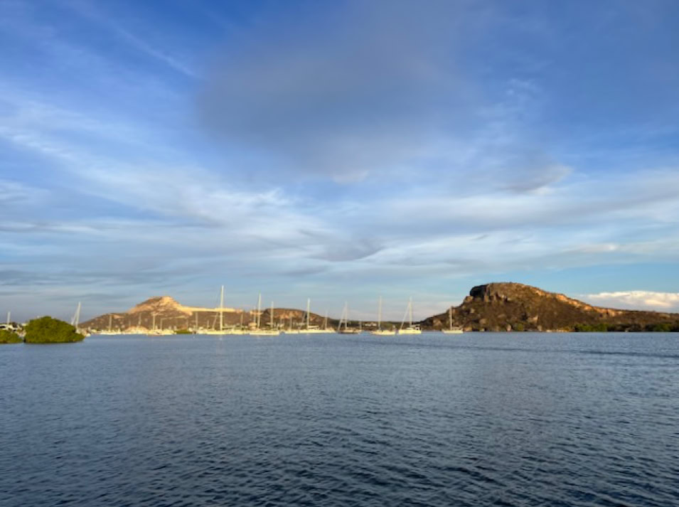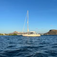 Endlich Wind und keine Mücken. Die Überfahrt ist ruhig und angenehm. Der Nachthimmel präsentiert sein Sternenkleid und am Tag besucht uns nach langer Zeit mal wieder eine Delfinschule. Wir staunen über die Seevögel, welche wie aus dem Nichts über dem offenen Meer kreisen und ebenso wieder verschwinden. Pilotwale begleiten uns eine Weile und schwimmen im gleichmäßigem Takt neben unserer Manatee her.