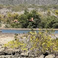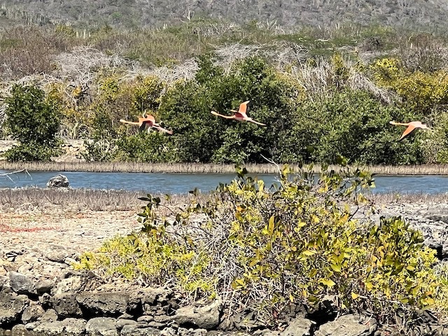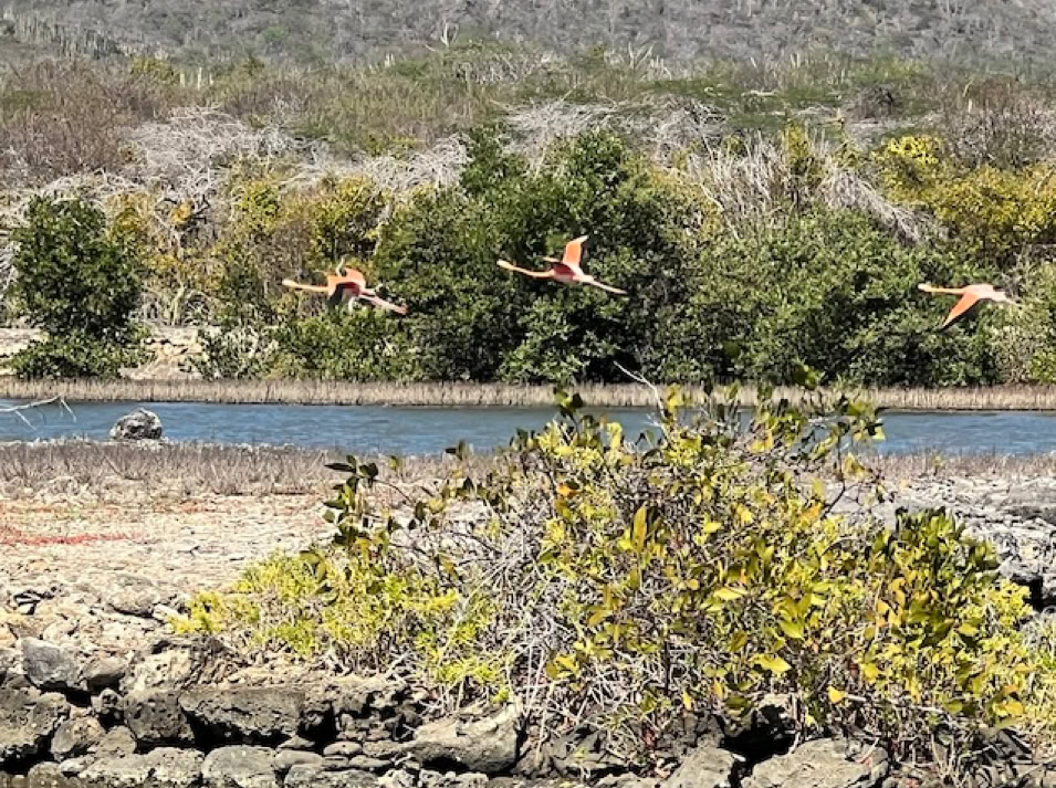 Da es auf Curaçao kaum regnet und wenn dann sehr kurz, wird die Landschaft vor allem durch Sträucher und Kakteen geprägt. Dafür sehen wir häufig das leuchtend gelbe Gefieder des hier heimischen Turpials, Geckos huschen über den Weg und auch Leguane können sehr schnell sein.