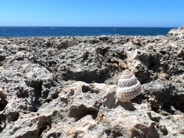 Die Lagune wird durch einen schmalen Landstreifen vom offenen Meer getrennt. Wir laufen entlang der dortigen offenen Strände, die etwas steinig sind, dafür aber vom Türkis des Atlantiks gesäumt werden.