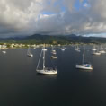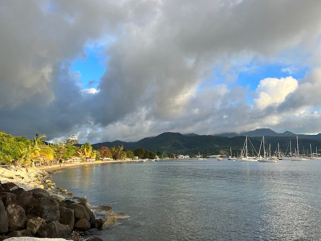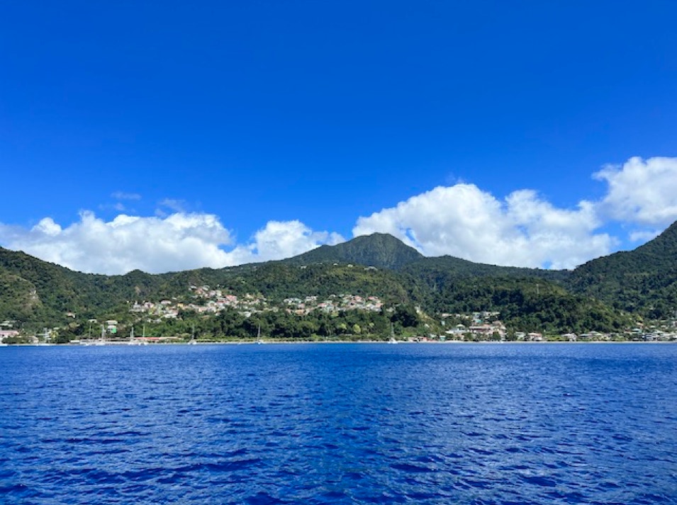 Saint-Pierre, Martinique. Wir nutzen die frühen Morgenstunden, lichten den Anker und machen uns auf den Weg. Sonne und halber Wind schieben unsere Manatee gut voran. Es ist schön, wieder auf dem Wasser unterwegs zu sein. Am frühen Nachmittag sind wir schon an unserem Ziel. Über Funk melden wir uns an, um an einer Boje in Roseau Dominica festzumachen. Ein Segelfreund erwartet uns bereits, die nächsten folgen und wir freuen uns alle über unser Wiedersehen.