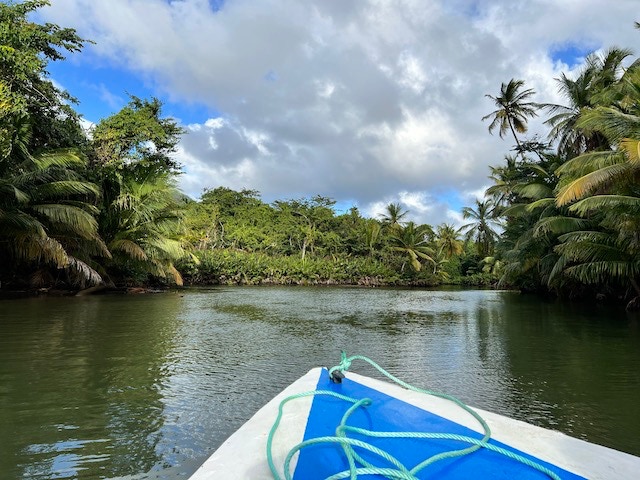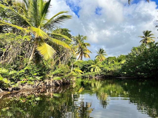 Und auch hier hat sich unsere kleine Segelgemeinschaft zusammengefunden und erweitert. Am Samstagnachmittag lassen wir uns durch den Indian River rudern. Ein wenig wie Spreewald, aber ohne Gurken. Vorbei am Haus der Calypso aus „Fluch der Karibik 2“ geht es durch eine urige Landschaft bis zur Bushbar, in der die Zeit still steht. Wir spazieren durch den kleinen botanischen Garten und probieren eines der Rumgetränke der Bar.