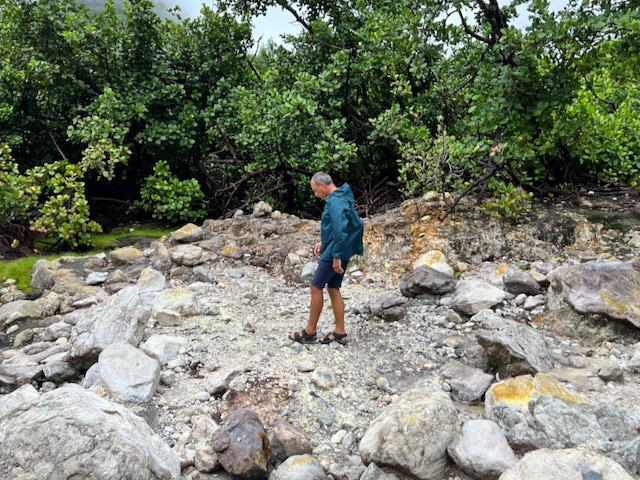 In der Nacht meint es der Himmel wirklich gut mit dem Putzen der Boote. Es schüttet bis in die Morgenstunden. Gewappnet mit Regenjacken geht es trotzdem zur nächsten Erkundungsrunde. Diesmal lernen wir den Geruch von Schwefelquellen kennen. Wir verweilen nicht lange.