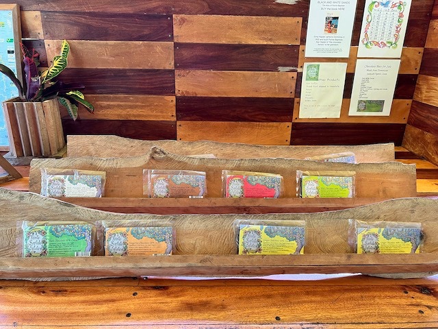 Der darauffolgende Stopp ist dann deutlich angenehmer. In der kleinen Schokoladenfabrik Pointe Baptiste wird uns die Herstellung des süßen Genusses gezeigt. Hier duftet es nach gerösteten Kakao. Es ist sehr interessant. Zum Abschluss kosten wir verschiedene Sorten und kaufen uns ein paar der Glücklichmacher.