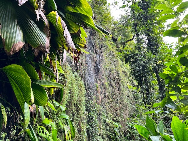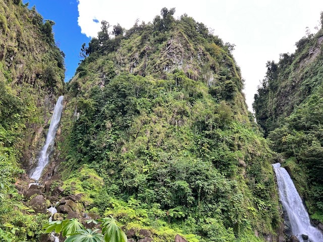 Die Landschaft ist fantastisch. Nach einem Lunch mit Blick auf viel Grün geht es zum nächsten Ziel, den Trafalgar Falls. Wow! Zwei Wasserfälle rauschen nebeneinander den Felsen herab. Nach ausgiebiger Bewunderung und den dazugehörenden Fotos heißt es nun für uns - klettern. Unser Guide zeigt uns den begehbaren Pfad und hilft uns, das Ziel zu erreichen. Oben angekommen, können wir uns mit einem Bad im Pool des Wasserfalls belohnen. Nach dem Gekraxel bergab sind wir froh, wieder festen Boden unter uns zu haben. Aber ein beeindruckendes Erlebnis.
