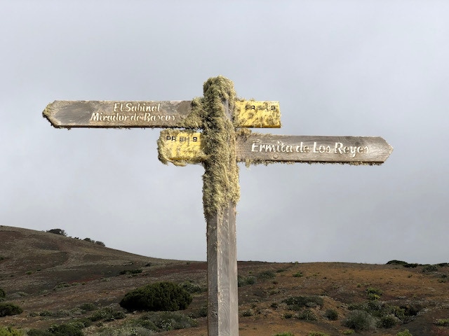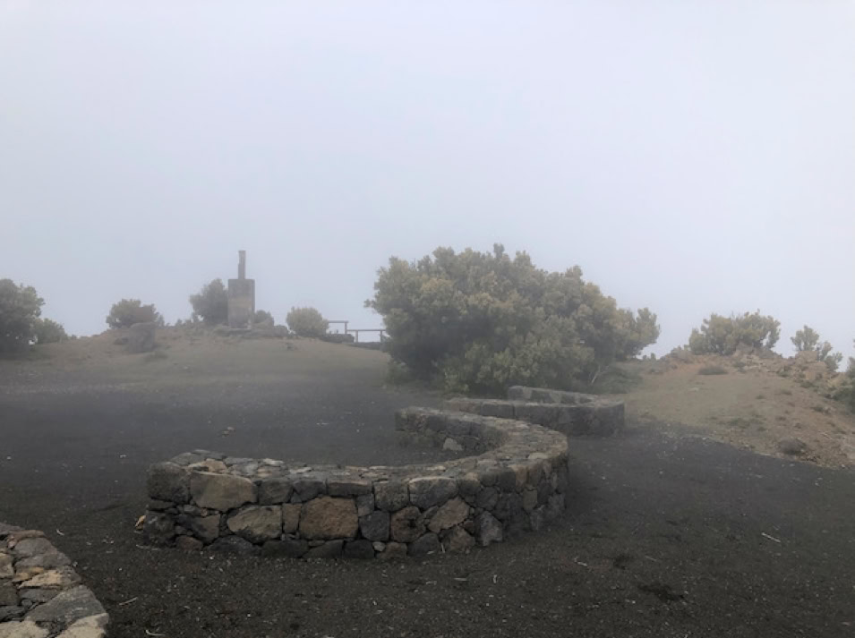 Auf dem höchsten Punkt der Insel, dem Pica Malpaso stehen wir in eine dicke Wolkendecke eingehüllt auf 1501Metern und sehen außer besagten Wolken leider nichts.