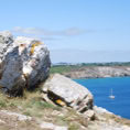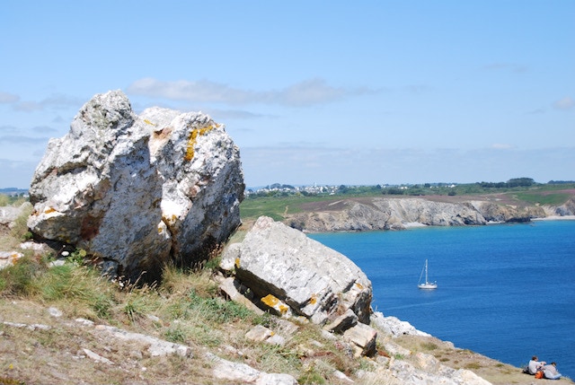 Da der Hafen voll aussieht, verbringen wir unsere erste Nacht vor Anker in Camaret-Sur-Mer. Am Morgen leert sich dieser. Wir verholen uns längsseits am Steg und erkunden den Ort und Umgebung mit den Fahrrädern. Auf dem Pointe de Pen-Hir erwartet uns eine fantastische Aussicht und auch der Steinkreis von Lagatjar ist beeindruckend. Es kommen gleich Erinnerungen an die Hinkelsteine von Asterix und Obelix auf. Ansonsten laden wunderschöne Strände, kleine Restaurants und weitere Sehenswürdigkeiten ein, hier zu verweilen.