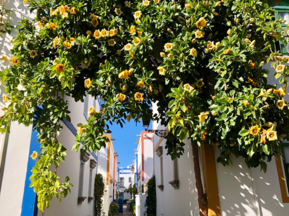 Puerto de Mogan, ein kleiner Urlauberort begeistert vor allem mit seinen Blumen in den Gassen, den bunten kleinen Häusern und dem zentralen Hafen, welcher von kleinen Restaurants und Bars umsäumt ist..