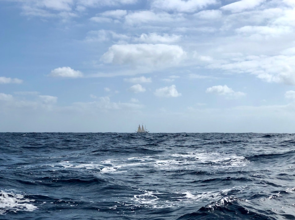 Die Nacht war ruhig vor Morro Jable. Jetzt heißt es früh aufstehen und fertigmachen für die Weiterfahrt. Mit dampfenden Kaffeebechern im Cockpit starten wir Richtung Las Palmas auf Gran Canaria. Die Landabdeckung Fuerteventuras ist geschafft und der Atlantik beschert uns einen fantastischer Segeltag. Halber Wind bei 15 - 25 Knoten und die Welle schiebt uns voran. Es läuft!