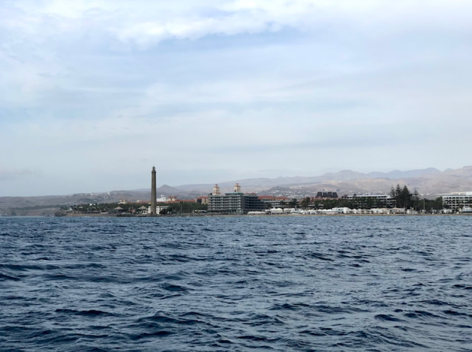Am nächsten Morgen geht es wieder raus auf den Atlantik. Wind kommt auf und wir segeln an den vielen Hotelanlagen vorbei gen Süden bis zum Playa de Meloneras und verbringen eine unruhige Nacht. Nach diesen ordentlichem Geschaukel am Anker steht nur noch die kleine Etappe bis zu unserem Zielhafen Puerto de Mogan auf dem Plan.