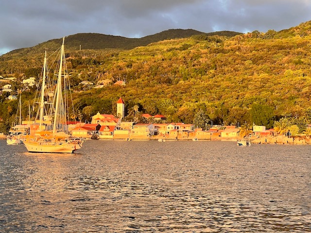Die Anmeldeformalitäten sind schnell erledigt und wir können unsere Umgebung erobern. Der kleine Ort der Insel ist ein typisches Urlaubsdomizil. Mehrmals täglich bringen die Fähren Besucher von Guadeloupe in die Saintes. Auch Kreuzfahrtschiffe wie die Royal Clipper oder die Seacloud halten regelmäßig zwischen den Inseln und beleben mit ihren Gästen die Straßen.