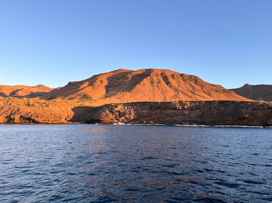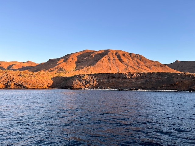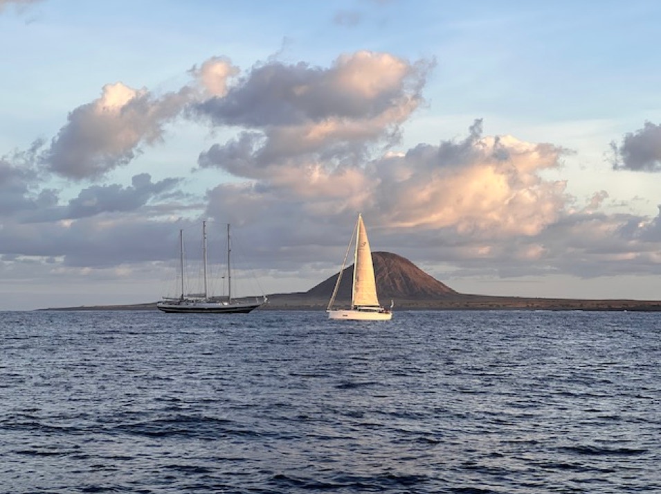 Es ist Samstag, der 03. Dezember, der Wecker klingelt um 6:30 Uhr. Wir machen uns auf den Weg zur Insel São Nicolau. Leider lässt uns der Wind etwas hängen und so muss der Motor unser Vorwärtskommen unterstützen. Backbord voraus sichten wir den Blas eines Wales. Es ist zwar ein spannendes Naturerlebnis, dennoch freuen wir uns, dass er weit genug entfernt ist und weiter zieht.
