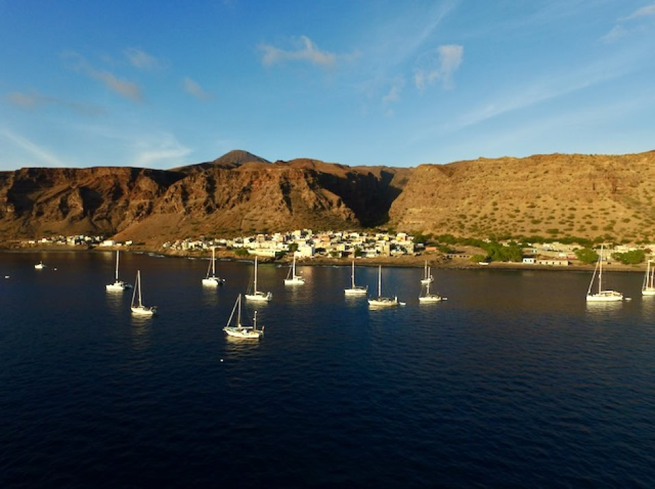 Normalerweise ist Tarrafal bekannt für seine Fallwinde, die den Berg herunter rauschen und die Boote ordentlich schaukeln lassen. Während unseres einwöchigen Aufenthalts haben wir Glück. Bis auf eine Nacht ist es ruhig. Also darf sogar die Drohne mal über das Ankerfeld kreisen und Impressionen einfangen.
