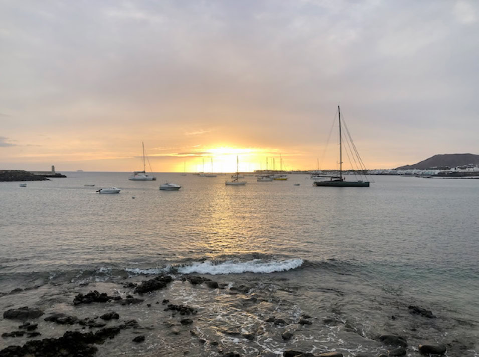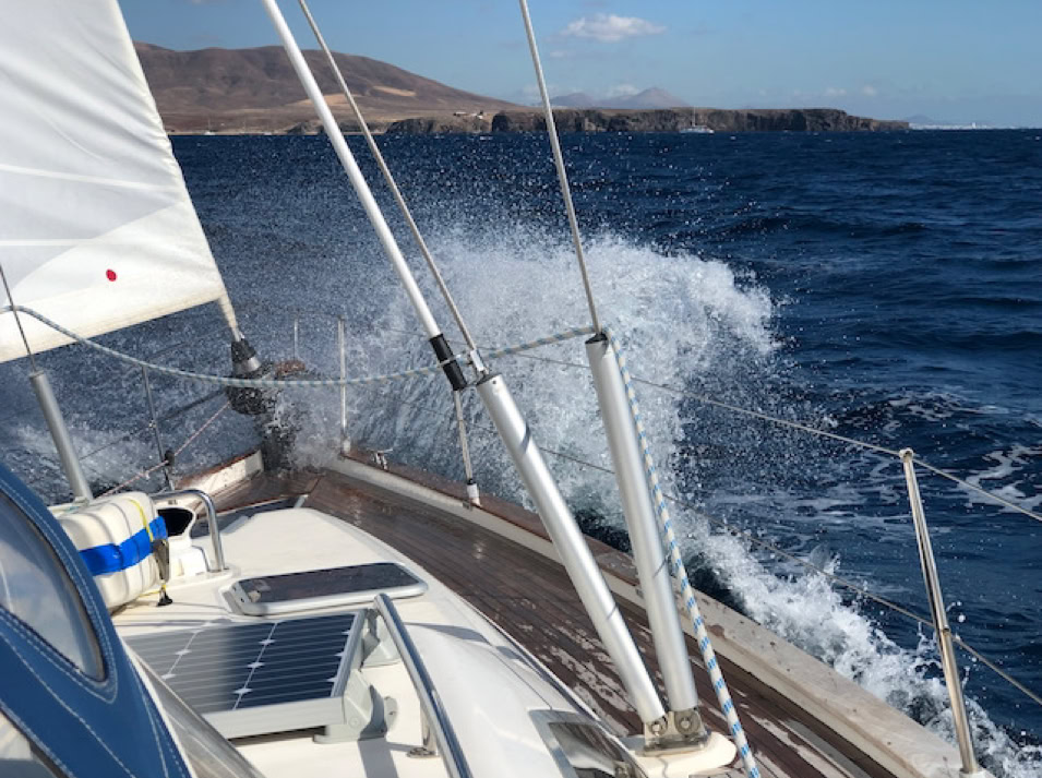 Der Atlantik empfängt uns mit ordentlichen Windböen und Wolkenfronten. Wir reffen die Segel und unsere Manatee rast durch die Wellen. Das Etmal am nächsten Tag beträgt beachtliche 176 Meilen. Das Wetter bleibt konstant ruppig. In den Böen bis 40 Knoten Wind, Wellen von Achtern und Backbord. Naja, wenigstens kommen wir zügig voran und erreichen den Süden Lanzarotes nach zwei Tagen in den frühen Morgenstunden. Wir lassen den Anker fallen und gönnen uns erst einmal eine Mütze Schlaf.