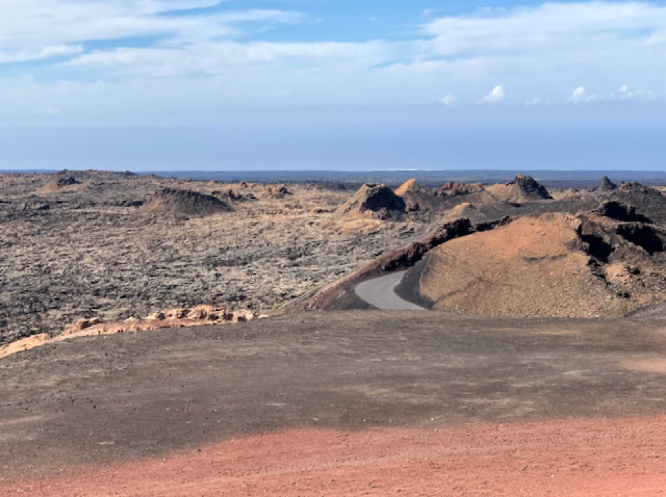 Wir machen uns auf, die Feuerberge des Timanfayagebirge zu besichtigen. Es geht eine Rundfahrt mit einem Bus ca. 45 Minuten durch die Vulkanlandschaft. Wir sind fasziniert von den unterschiedlichen Formen und Farben der zurück gebliebenen Natur.