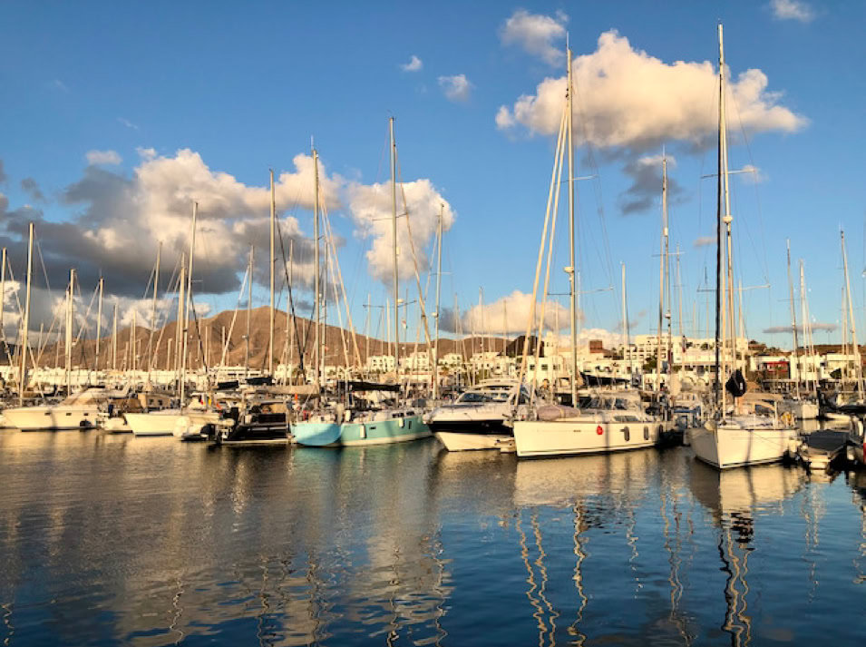 Mit dem Dingi geht es an den Anlegesteg der Marina Rubicon. Wir machen uns auf die Suche nach einer Karte für unser Internet. Dabei fällt uns auf, dass es hier Mittagspausen in den kleinen Geschäften gibt, die es beim Einkauf zu berücksichtigen gilt. Es tummeln sich viele Urlauber zwanglos auf den Promenaden von Playa Blanca. Die Sonne strahlt und der Ort verbreitet eine entspannte Atmosphäre.