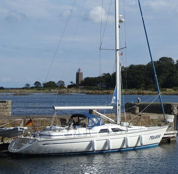 Unter Motor, ein Volvo Perkins Turbodiesel TMD22 (78 PS / 57 kW) mit Wellenantrieb, haben wir mit unserem Schiff bisher jede Herausforderung gemeistert. In der Kombination mit dem Bugstrahlruder Side-Power 75 sind Hafenmanöver ein Kinderspiel. Bei Rückwärtsfahrten muss der Radeffekt und Versatz nach Steuerbord durch die rechtsdrehende feste Schraube berücksichtigt werden. Mit 1800 Umdrehungen pro Minute erreichen wir mit unserer Manatee ca. 7 Knoten Geschwindigkeit über Grund.
