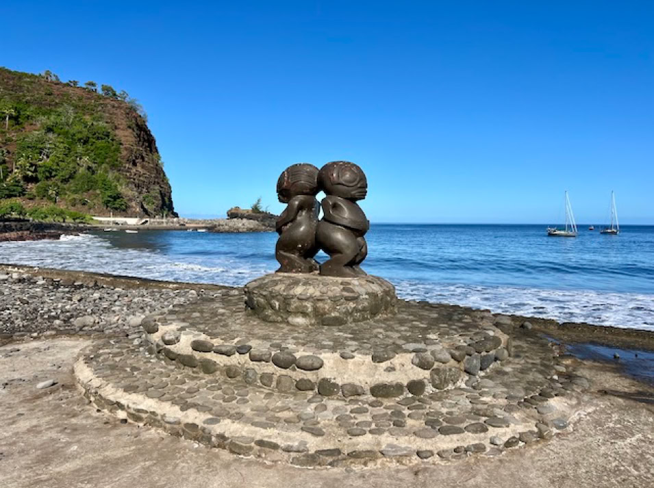 Wir sind in der Südsee. Genau gesagt in Französisch-Polynesien, in der Inselgruppe der Marquesas und unsere erste Insel ist Hiva Oa, welche auch mit dem Schaffen des Malers Paul Gauguin und des Chansonniers und Schauspielers Jacques Brel bekannt wurde.