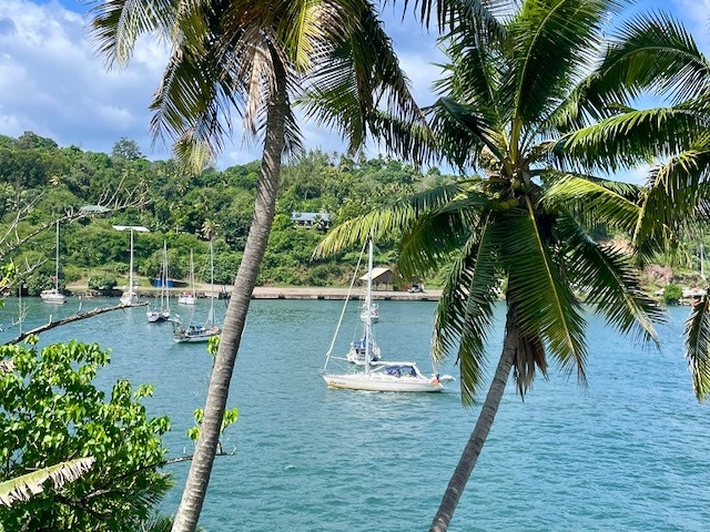 Das Ankerfeld ist klein, doch wir finden ein gutes Plätzchen und genießen erst einmal den Anblick. So viel Grün, Hähne krähen und es riecht nach Land. Der gegenüberliegende Berg erinnert uns an den Teide auf Teneriffa, in dessen Gipfel ebenfalls meist eine Wolke hängt. Wir sind begeistert und dann schlafen wir erst einmal richtig aus.