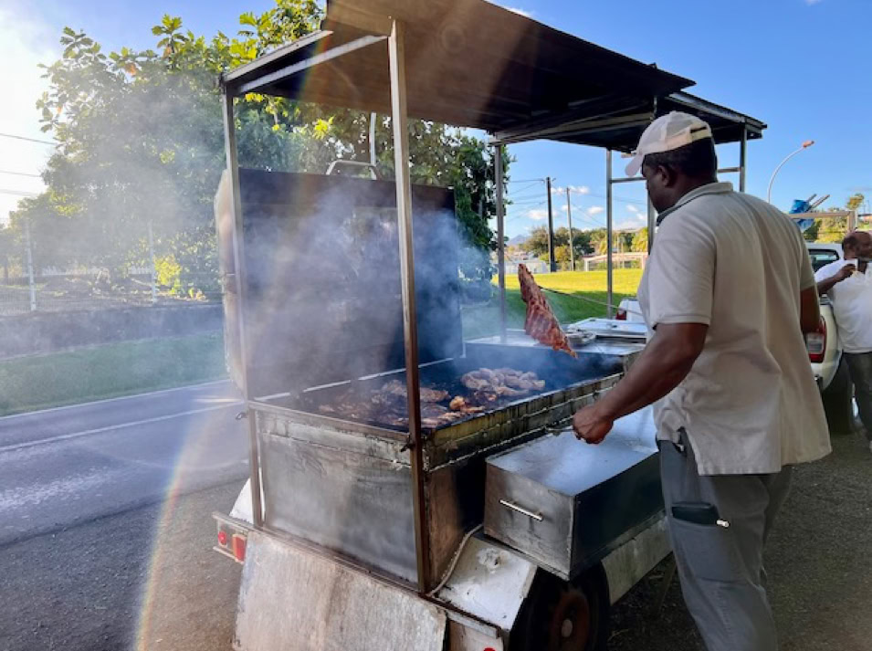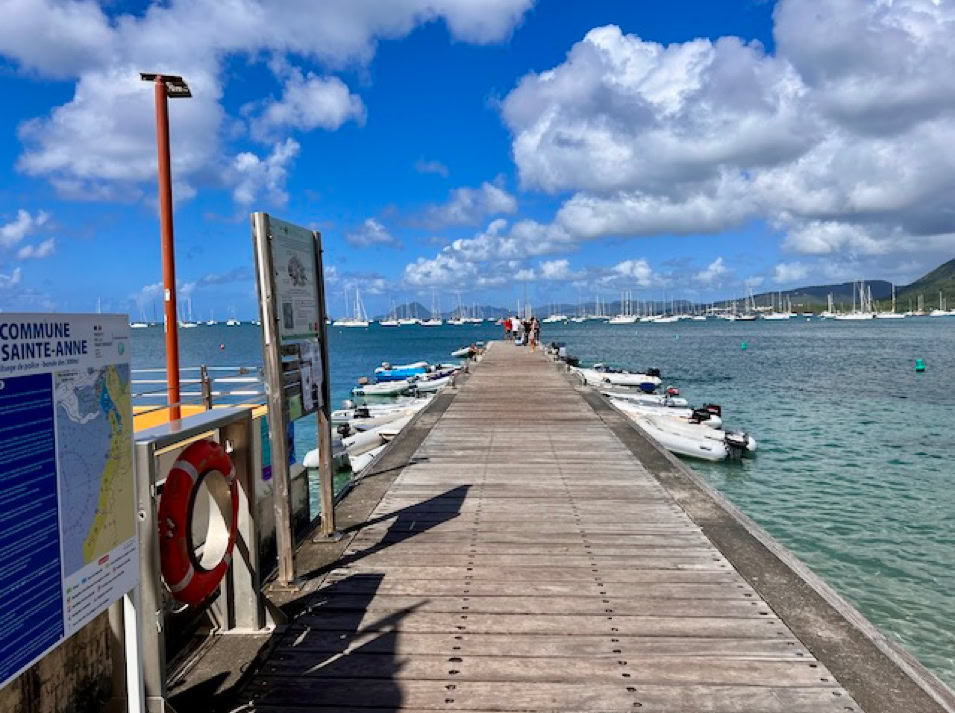 Nach zehn Tagen geht es zurück in die Bucht vor Sainte-Anne, wo wir mit den anderen Seglern gemütlich in den Wellen schaukeln. Nun geht es mit dem Dingi an Land. Und schon stehen wir vor einer kleinen Kirche genau gegenüber des Anlegesteges. Sainte-Anne ist ein kleiner, charmanter Ort, in dem sofort Urlaubsstimmung aufkommt. Uns zieht es zum Markt, um frisches Obst und Gemüse zu kaufen. Und auf den Plätzen bieten die Frauen Martiniques Pasteten und kleine Kuchen an. Alles sehr lecker.