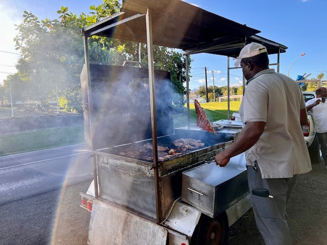 An den Straßenrändern stehen Obst und Gemüsestände und der ein oder andere Straßengrill verströmt appetitlich seinen Duft. Wir halten an, erleben die lockere Stimmung während des Wartens und nehmen uns ein Stück Fleisch für unser Abendessen mit.