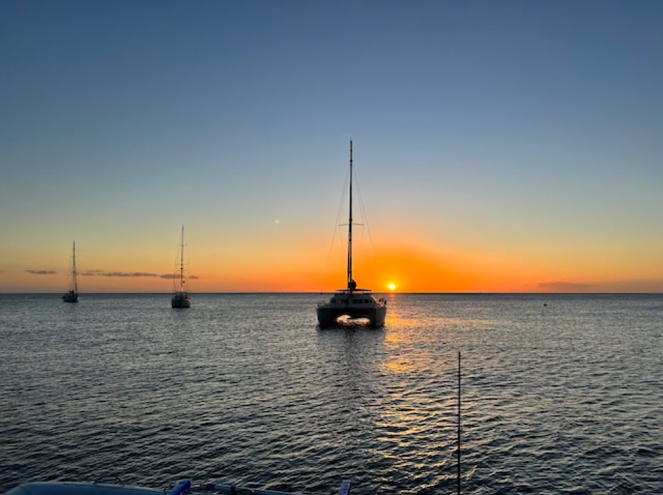 Am 13. Februar lichten wir den Anker, das Wetter ist perfekt und so ziehen wir mit vielen anderen Seglern gen Norden. Der Diamant, ein großer Felsen, ragt aus dem Wasser und zeigt sich mit seinen vielen Facetten. Bevor es aber zur nächsten Insel geht, stoppen wir noch einmal in Sainte Pierre und genießen einen wunderschönen Sonnenuntergang.