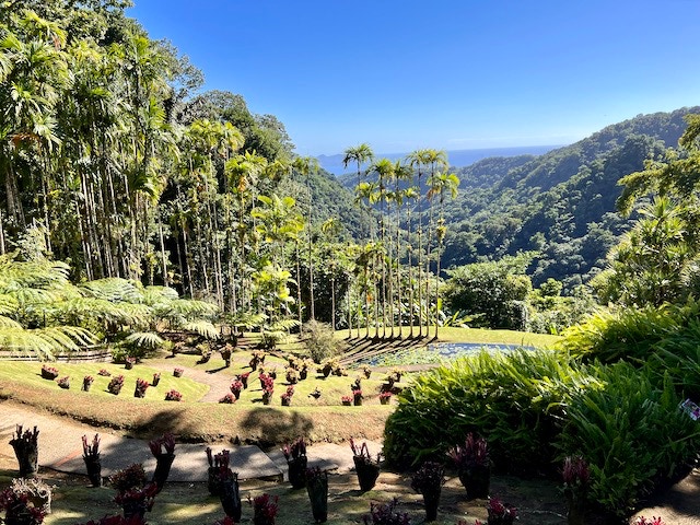Wir starten unsere Rundtour in Richtung Westen, fahren die Küstenstraßen entlang und schauen uns die kleinen Ortschaften an. Begeistert sind wir von der Natur, welche sich im satten Grün präsentiert. Vorbei am Memorial de L’Anse Caffard, welches der Sklaven eines gesunkenes Schiffs gedenken, einem Abstecher in die Hauptstadt Fort-de-France geht es bis zum Jardin de Balata, einem schönen botanischen Garten und haben Spaß auf deren Hängebrücken.