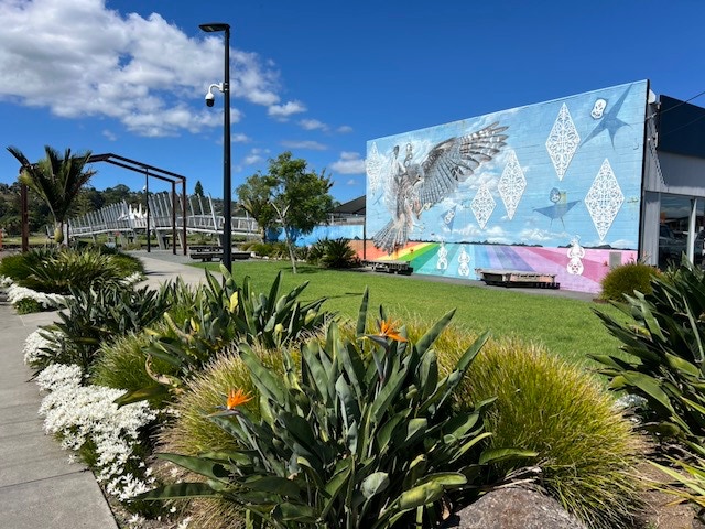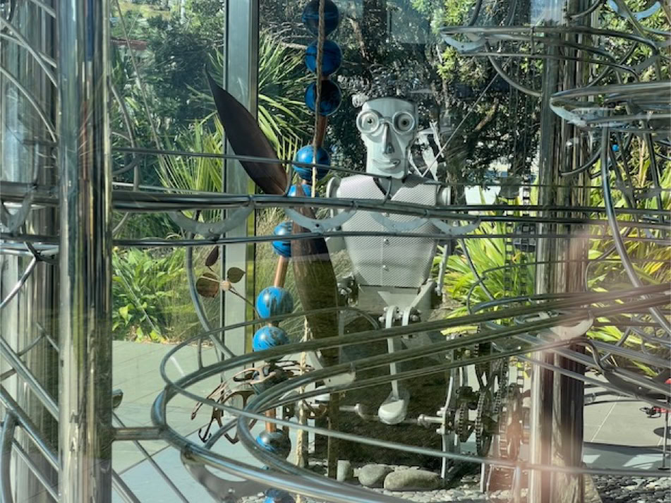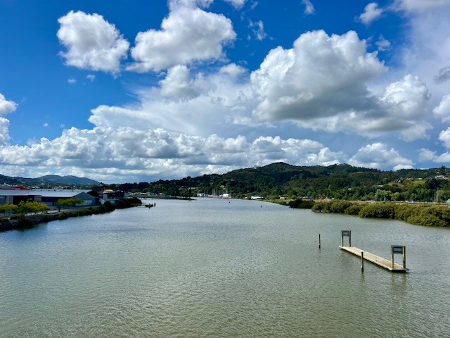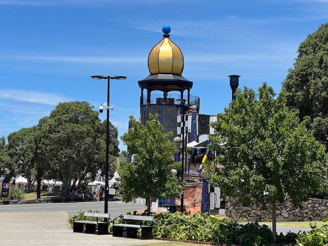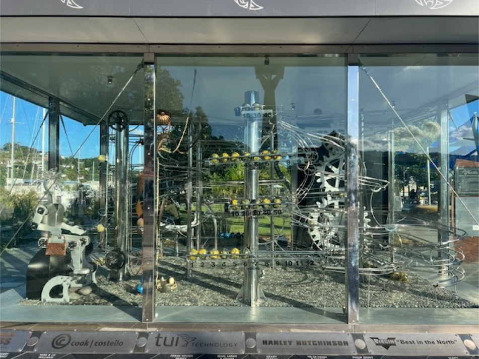 Es ist Zeit, unsere Umgebung näher zu erkunden. Wir entdecken wichtige Gewerke für Bootsarbeiten und haben den Pak'nSave, einen günstigen Supermarkt, gleich um die Ecke. Kleine Restaurants und Museen reihen sich am Ufer der Marina. Die goldene Kuppel des Hundertwassergebäudes steht im Zentrum, und das lustige Metallmännchen der Rolling Ball Clock strampelt eifrig, um uns die Zeit anzuzeigen. Rund um den Hatea-Fluss führt ein ca. 4 km langer Rundweg, vorbei an einladenden Spielplätzen, Fitnessgeräten, Kunstobjekten, Sitzgelegenheiten und grüner Natur. Dieser Loop wird von Einheimischen, Besuchern und natürlich auch von uns intensiv genutzt.