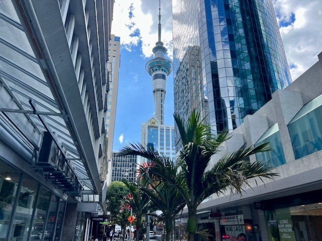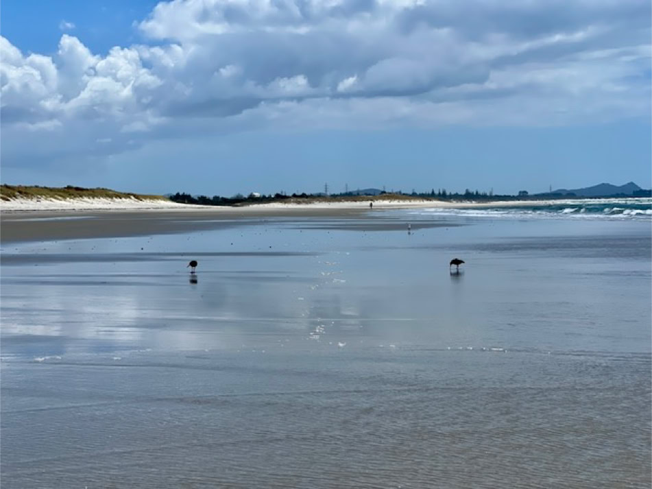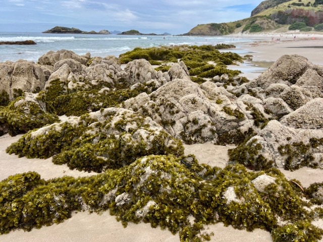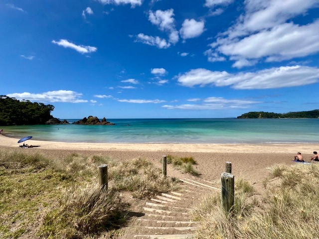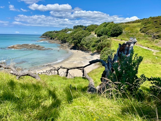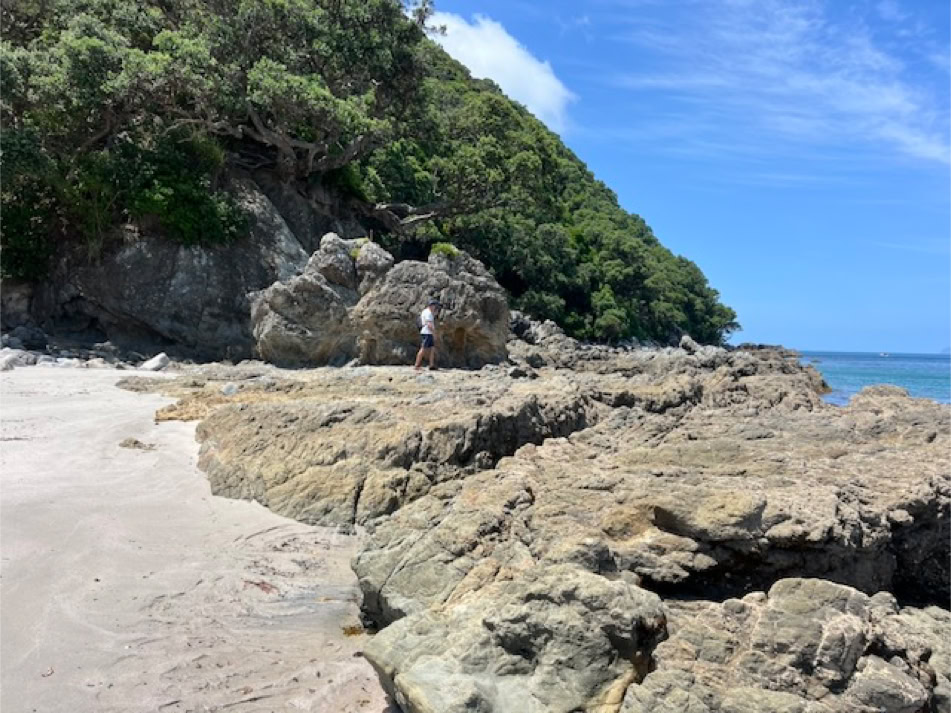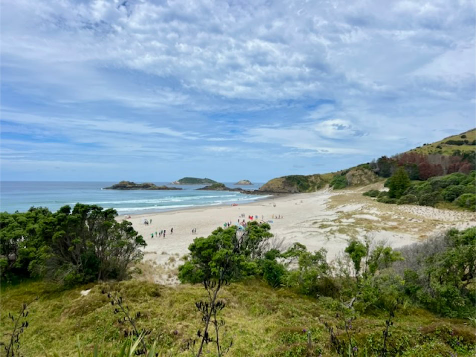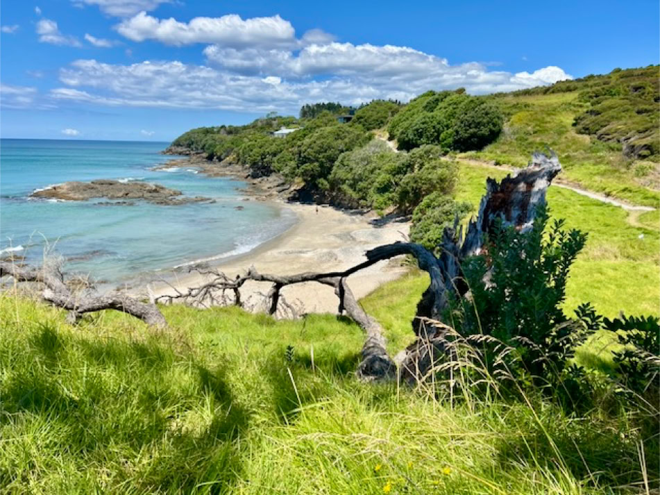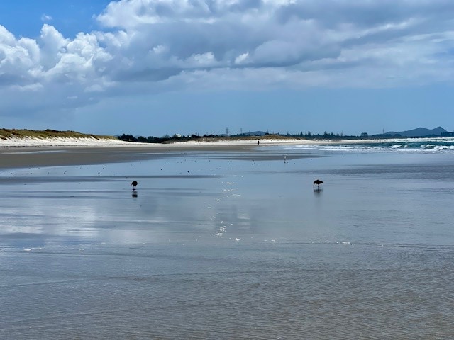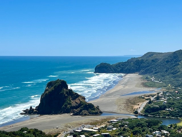 Es geht nach Auckland und hinauf zum Sky Tower. Von dort haben wir eine fantastische Sicht auf die sich weit ausbreitende Stadt. Doch das lange Autofahren macht uns keinen Spaß, und so zieht es uns immer wieder ans Meer. Die salzige Luft, das Rauschen des Meeres und die langen Strände laden zu Spaziergängen ein. Wir beobachten Oystercatcher mit ihren langen Schnäbeln, sehen den Seeschwalben, Möwen und Surfern zu. Sogar Delfine entdecken wir in der Ferne, und ein Rochen ruht sich an einem Stein aus. Die Strände sind nie überfüllt, und an den Ufern stehen knorrige Bäume und bizarre Felsen.