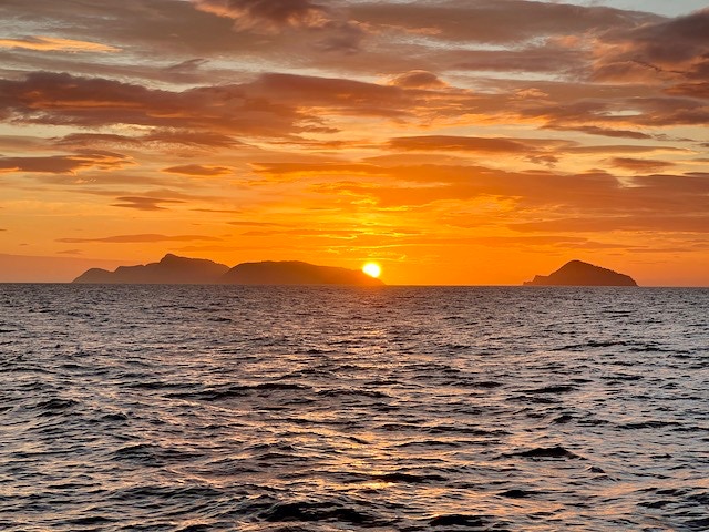 Nun ist es soweit! Wir haben den 1. November 2024. Wieder einmal liegt unsere kleine Flottille im Päckchen an der Pier. Die Tanks werden gefüllt, und beim Ausklarieren werden Papiere ausgefüllt und Stempel gedrückt. Am Nachmittag ist alles erledigt, und wir starten mal wieder in die Weiten des blauen Pazifiks. Wir sind gut auf diese anspruchsvolle Passage vorbereitet. Schließlich verlassen wir den stetigen Passatwind auf unserer Route, und so meistern wir die ersten Wetterkapriolen um uns herum. In den letzten Tagen beruhigt sich die See, die Sonne scheint, und der Wind lässt unsere Manatee sanft durch die Wellen gleiten. Fantastisch!