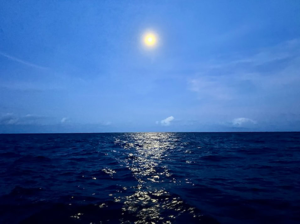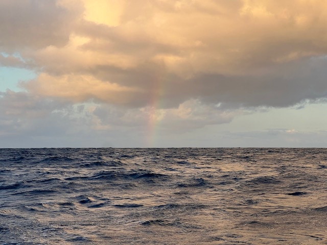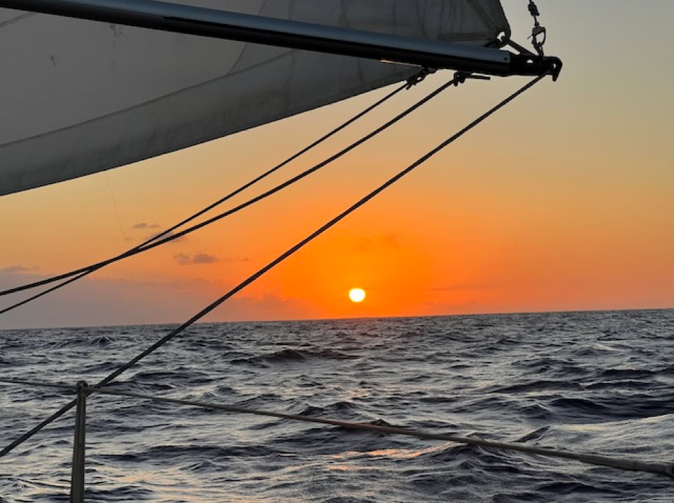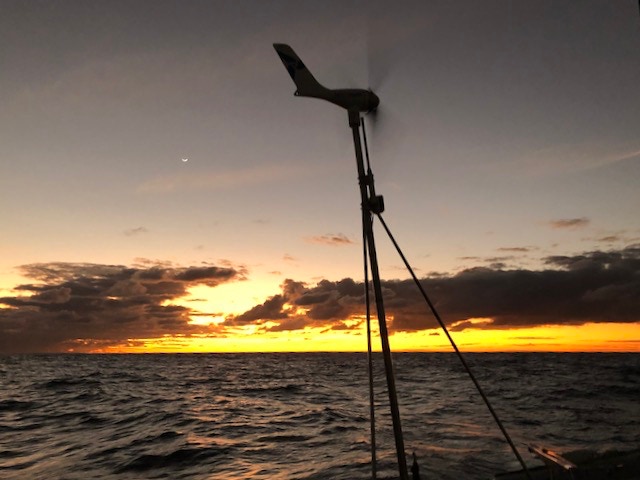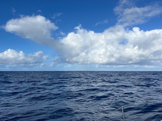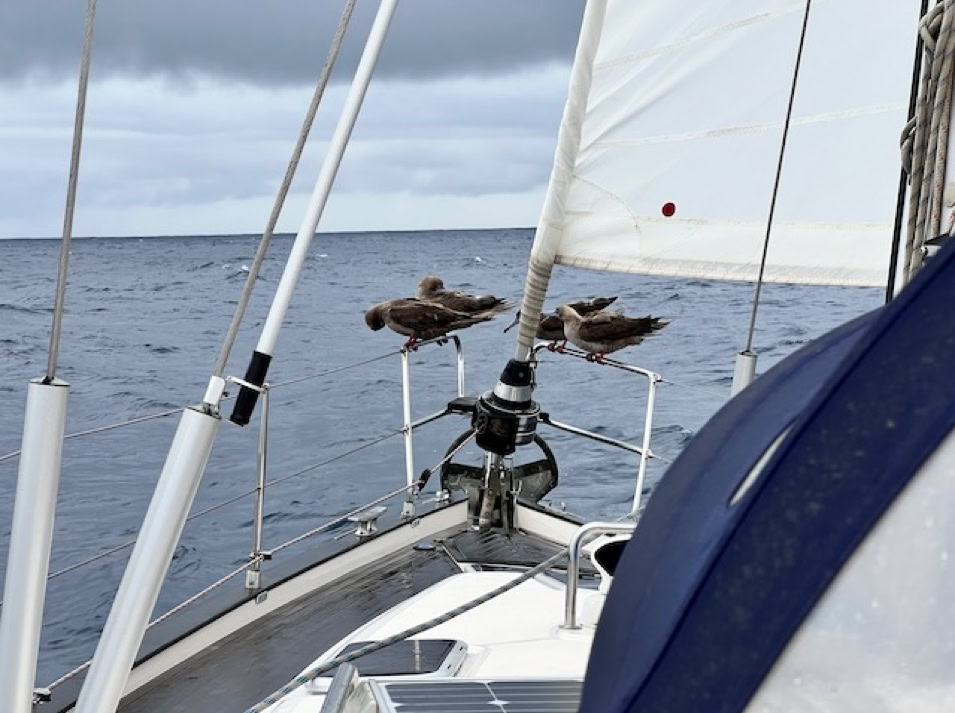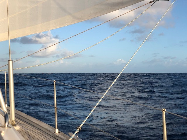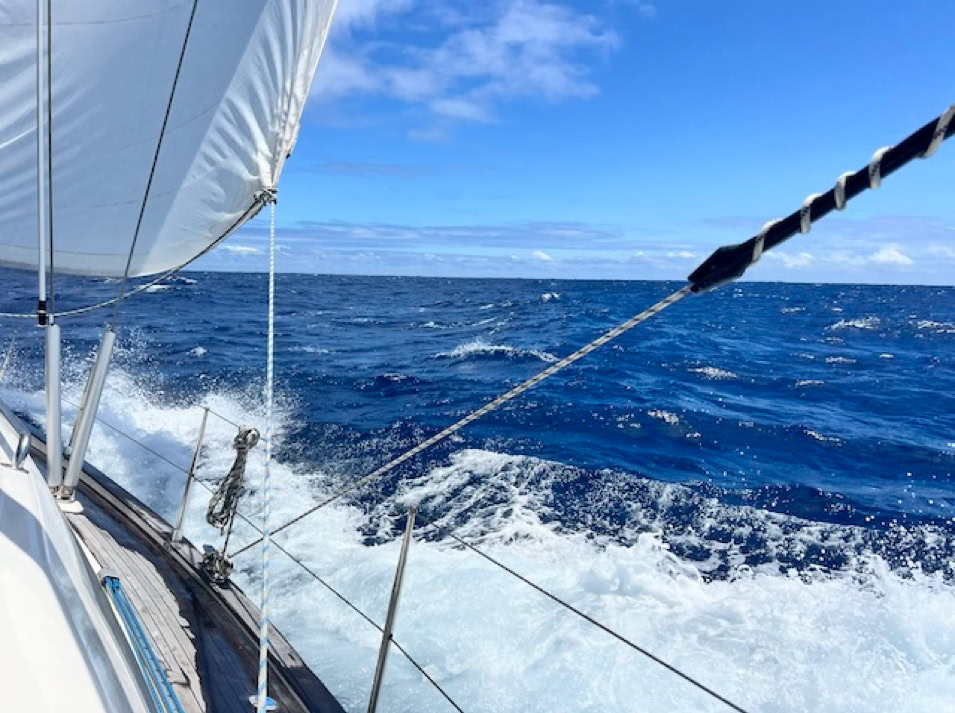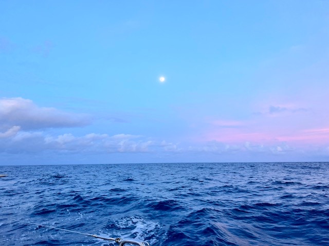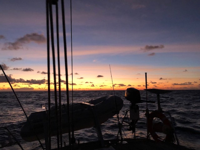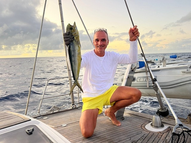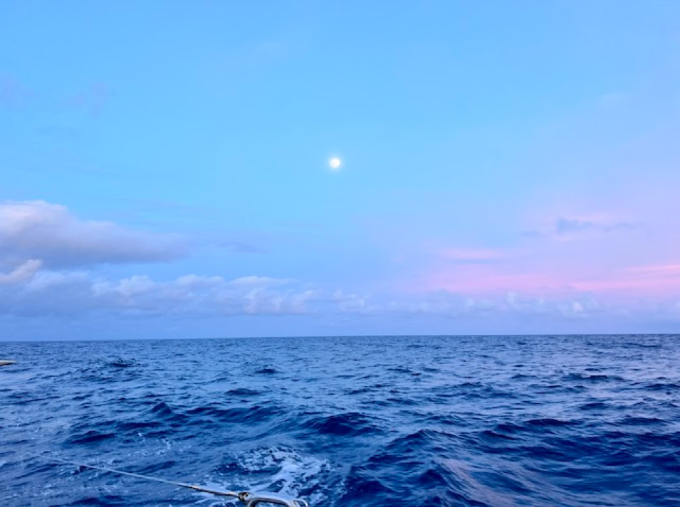 Wir kommen gut voran. Die Tage sind kurzweilig und zu unserer täglichen Bootsroutine gibt es immer etwas zu tun. Zur Entspannung gibt es Hörbücher, wir lesen, zeichnen oder schauen einfach den Wellen und Wolken zu. Die Angel kommt zum Einsatz und bald hängt auch der erste Mahi-Mahi am Haken. Eine willkommene Abwechslung in unserer Bordküche.