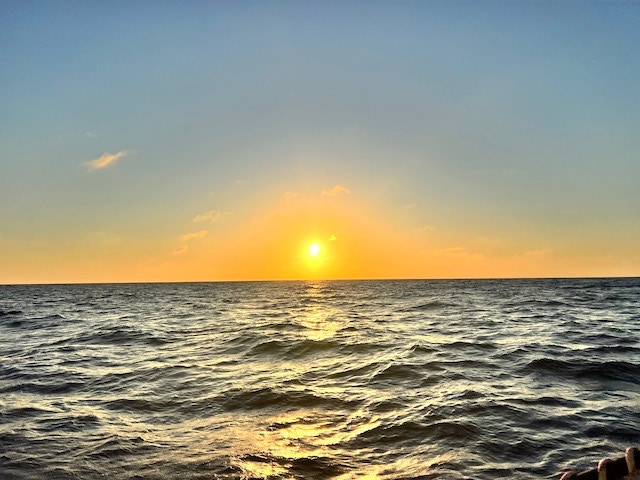 Das erste Drittel unserer Reise ist ziemlich unruhig. Die Wellen krachen gegen die Manatee. Der Wind ist unbeständig und die Meeresströmung gegen uns. Der Motor muss arbeiten und der Dieselstand sinkt. Bei unsrer Planung des Törns und der ständigen Wetterchecks haben wir aber genug Motorstunden eingeplant, noch zusätzliche Kanister Diesel gebunkert und so kommen wir beruhigt durch diese ungemütliche Wettersituation.