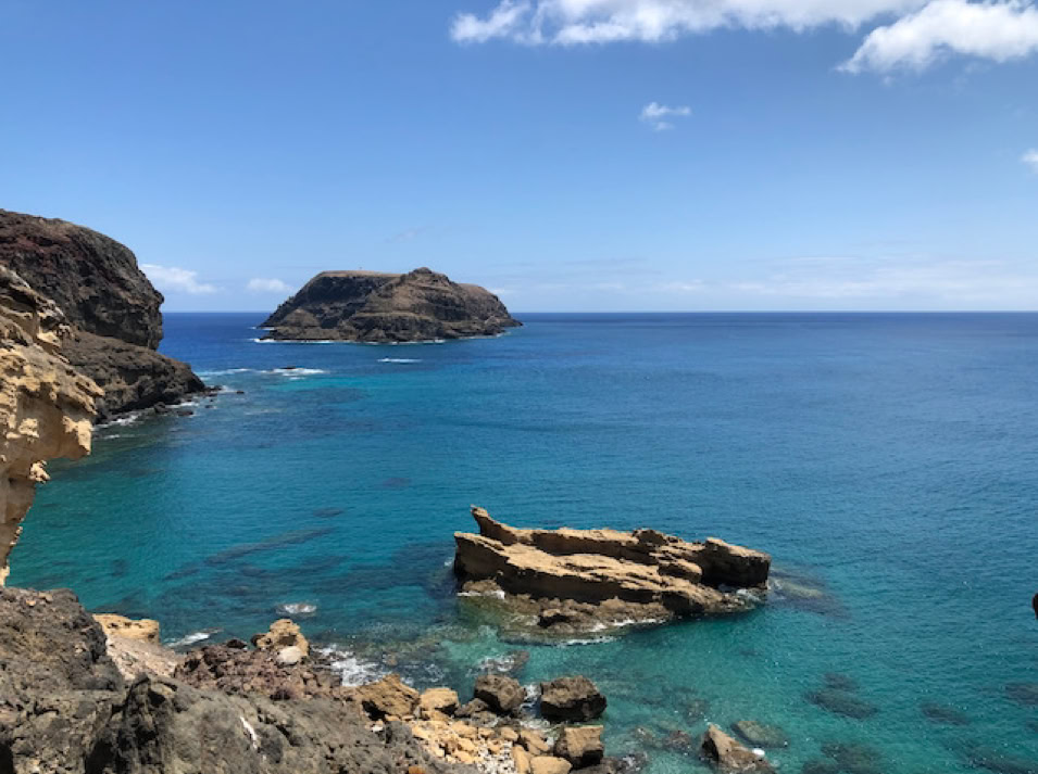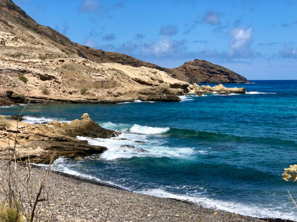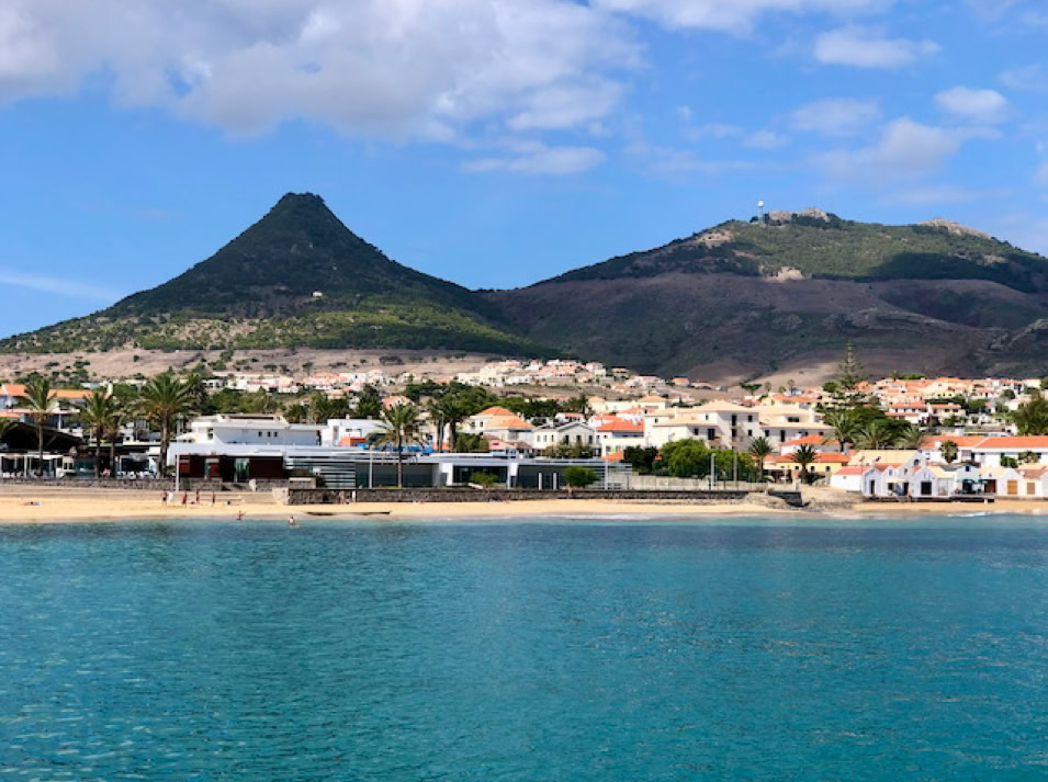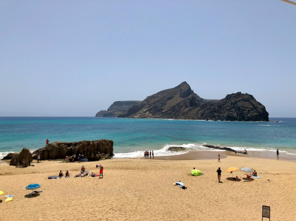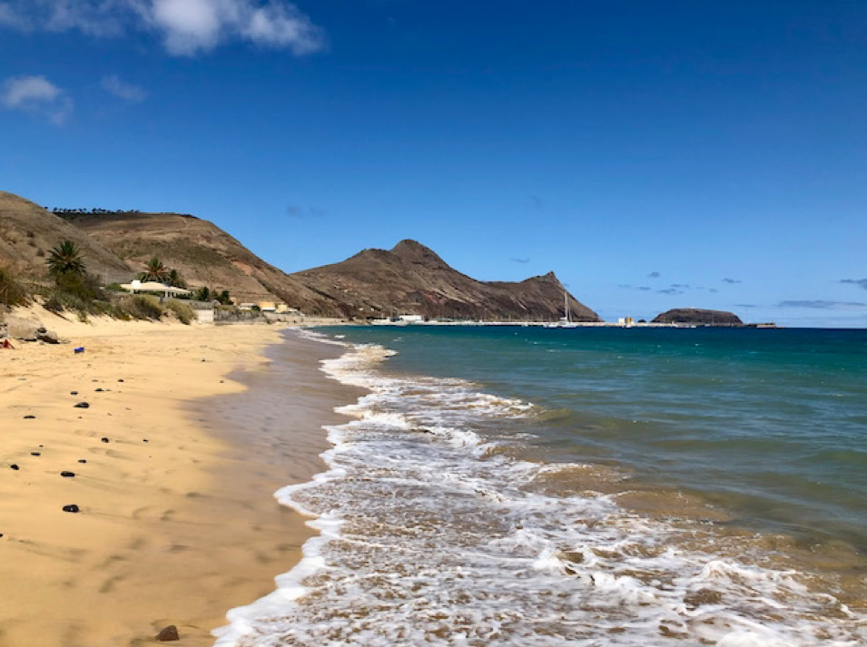 Porto Santo präsentiert sich in seiner kargen Schönheit. Berge aus Lavagestein und trockene Wiesen prägen die Landschaft. Eingebettet im blauen Atlantik punktet die Insel mit seinem langen goldgelben Sandstrand. Weshalb sie auch den Beinamen die „Goldenen Insel“ trägt.