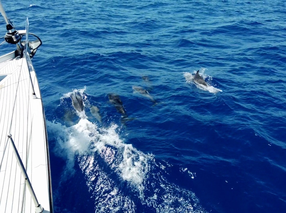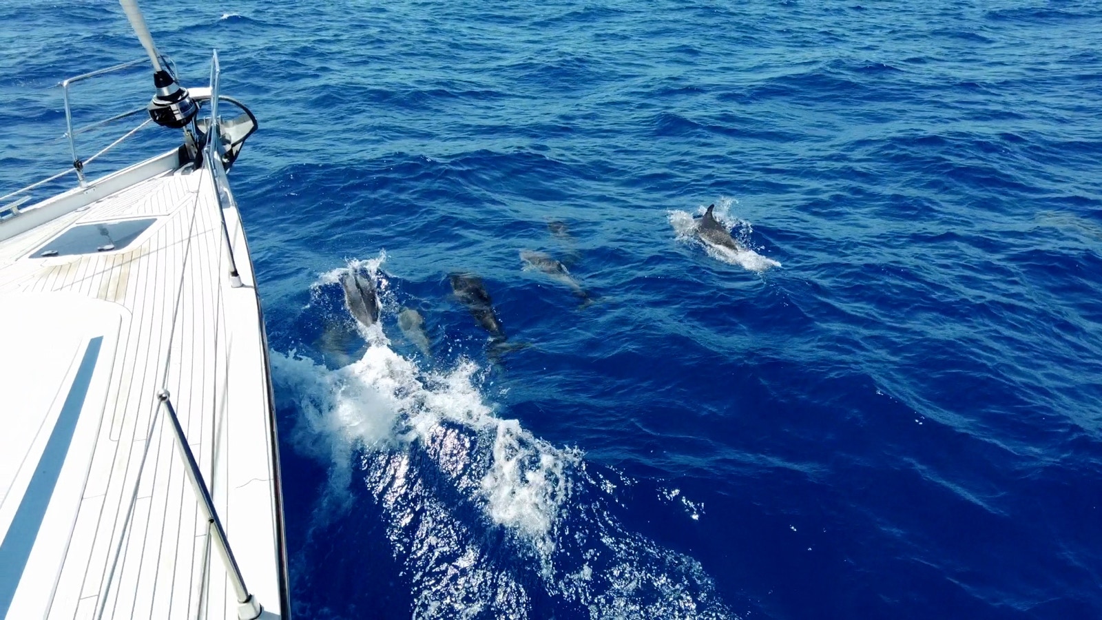 Irgendwann beruhigt sich auch dieses Wetter. Die Wellen werden länger und die nächsten Tage zeigen sich von ihrer schönen Seite. Sonne, moderater Wind, das Meer leuchtet in den schönsten Blautönen und Delfine spielen in der Bugwelle. Die Nächte sind zwar kalt, doch der Sternenhimmel entschädigt. Mit dem Geräusch der Wellen gleiten wir durch den Ozean, um mit dem Sonnenaufgang den nächsten Tag zu begrüßen.