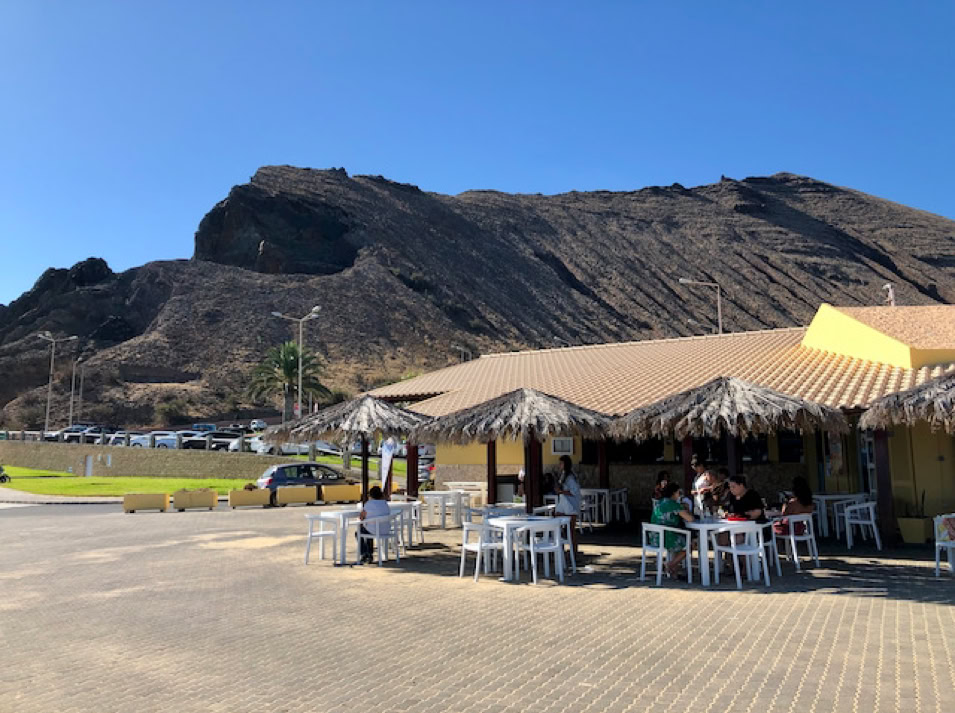 Mit dem Rad geht es ans andere Ende der Insel, zum Estrada de Calheta. Dort belohnen wir uns mit einem kalten Bier und auch hier blickt man auf eine schöne Kulisse.