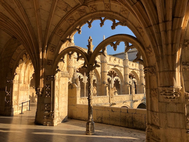 Natürlich besuchen wir auch das Kloster Mosteiro dos Jerónimos in Belém. Durch die fehlenden Touristen sind wir fast allein im Kloster und schlendern entspannt die Gänge entlang, bewundern die Architektur, die reich verzierten Säulen und Fenster und freuen uns über die freien Ansichten um zu staunen und zu fotografieren. Zum Abschluss finden wir uns in der berühmten Pastéis de Belém ein und lassen uns die leckere Köstlichkeit, Espresso und ein Gläschen Portwein schmecken.