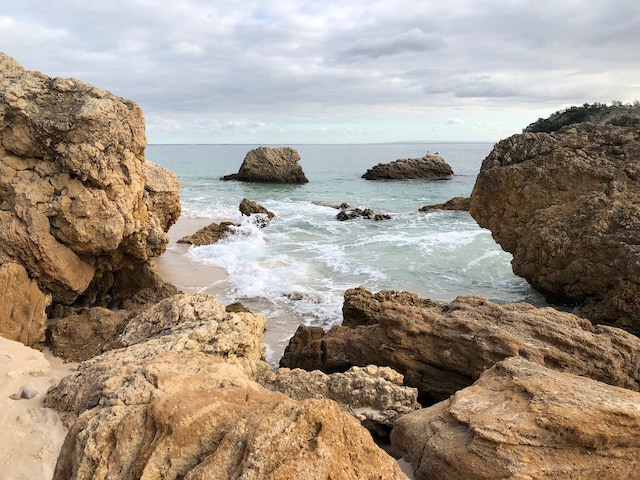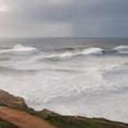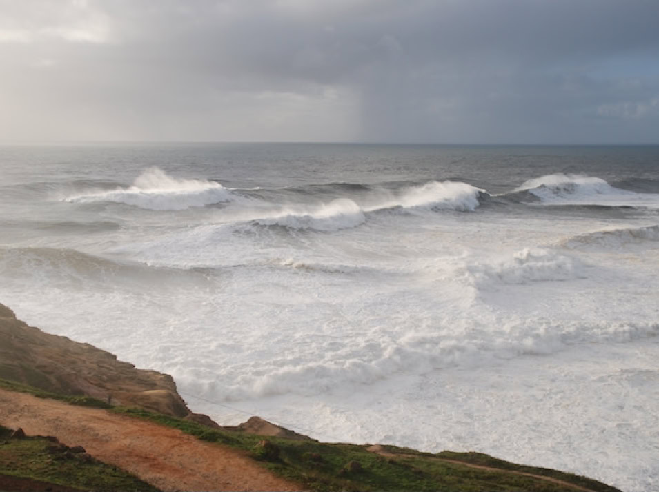 Sonne, Wolken und Regen wechseln sich ab. Die Wellen an diesem Tag sind zwar nicht außergewöhnlich hoch, aber trotzdem großartig. Wir stehen am Strand, sehen das tosende Wasser auf uns zukommen und sind beeindruckt, atemlos, sprachlos. Wir beobachten das spektakuläre Schauspiel von unterschiedlichen Aussichtspunkten und sind einfach nur glücklich.