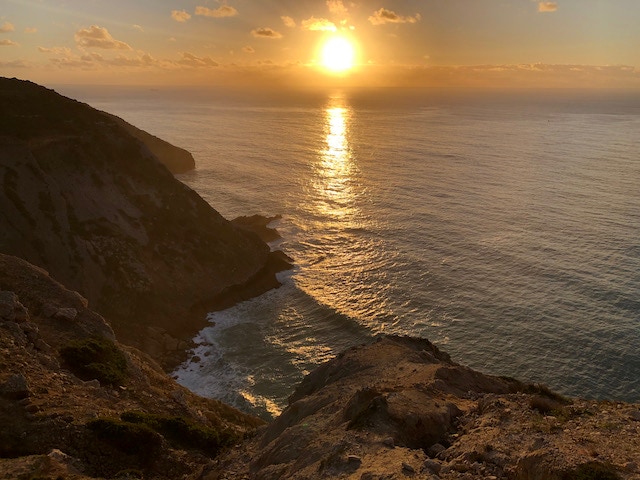 Den Sonnenuntergang wollen wir am Cabo Espichel erleben und so geht es die schmale Küstenstraße entlang bis zum Leuchtturm und wieder erwartet uns ein beeindruckendes Naturschauspiel.